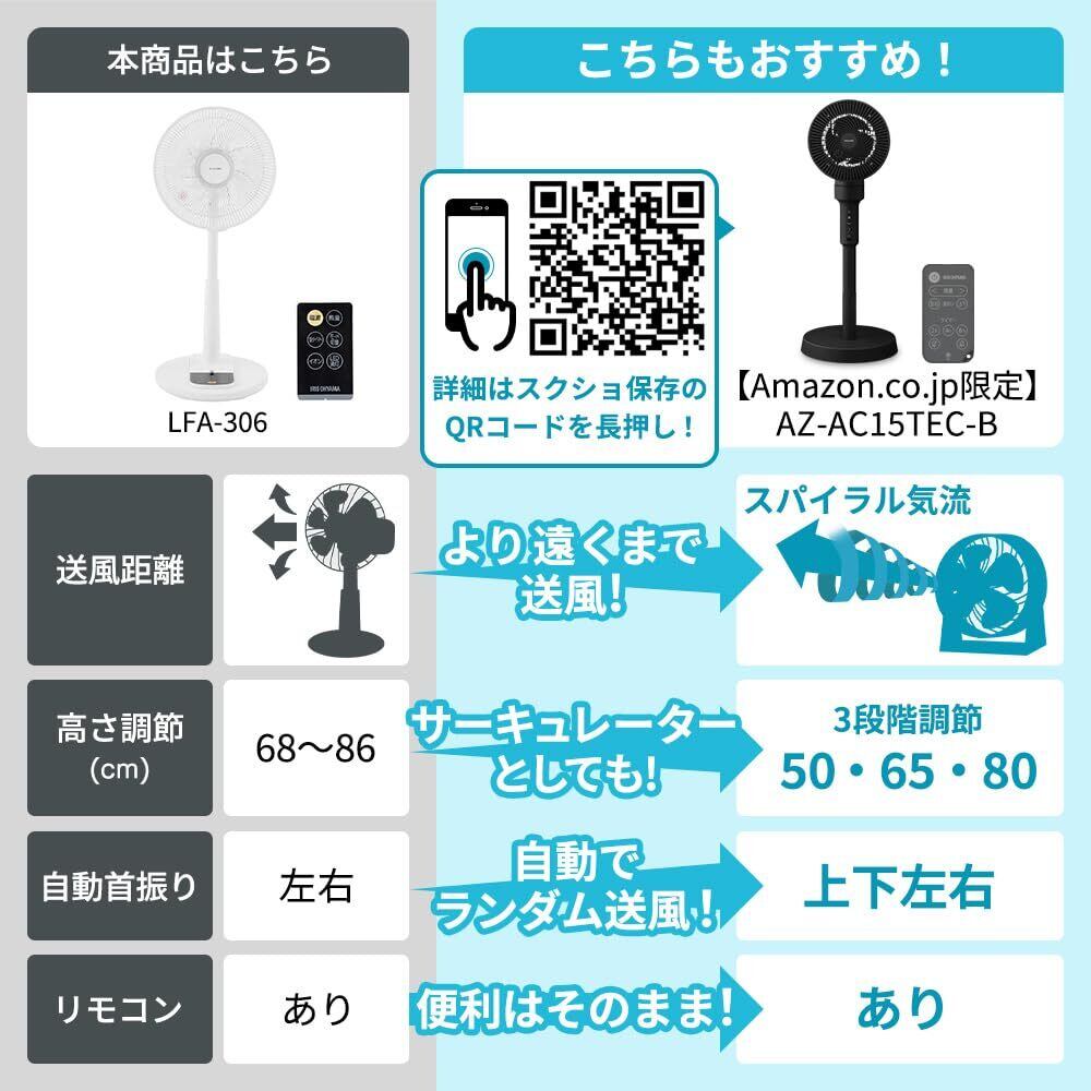 アイリスオーヤマ 扇風機 マイナスイオンモード 7枚羽 首振り 風量3段階 リモコン付き タイマー機能付き 換気 リビング扇 ホワイト LFA-306