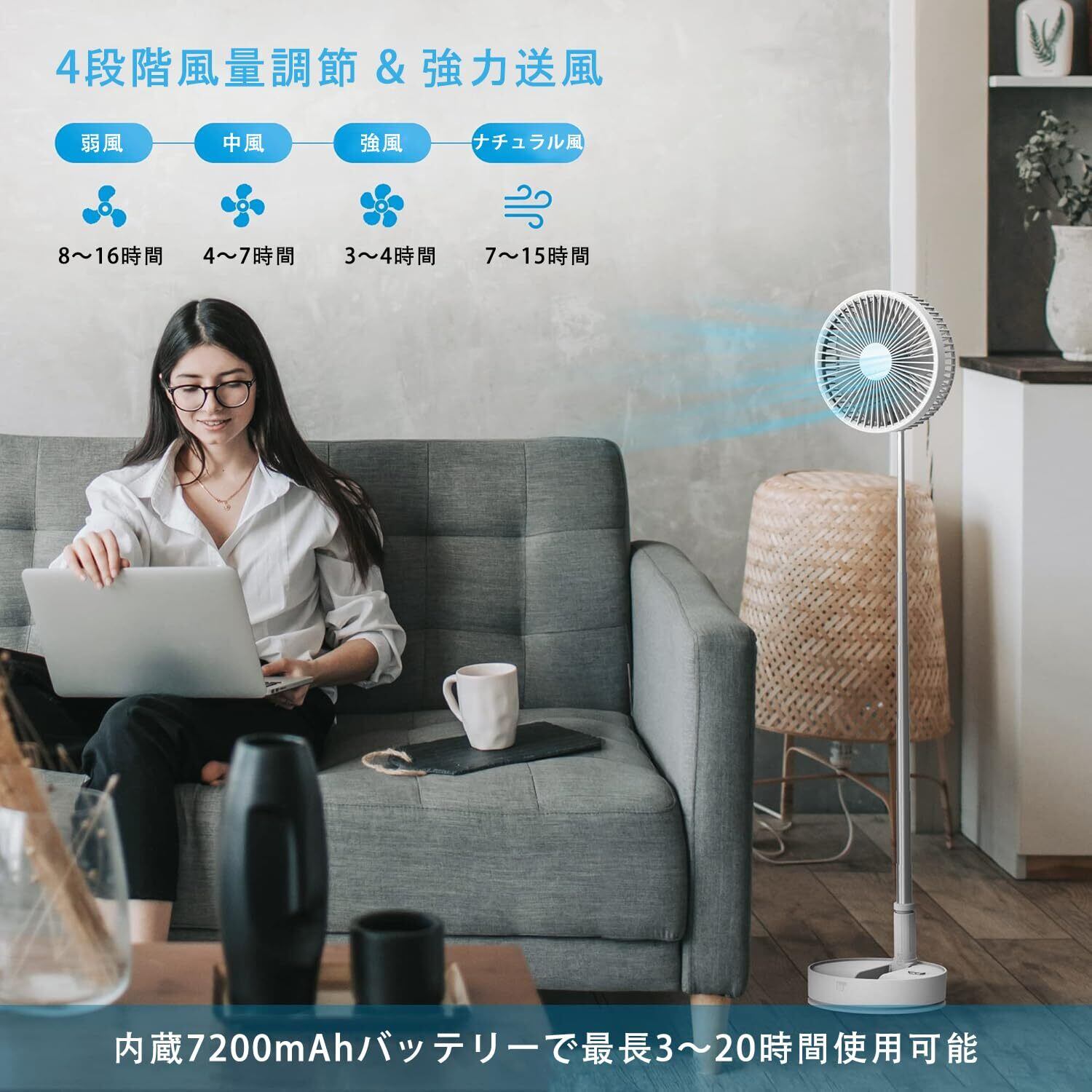 【進階款】扇風機 折り畳み リビング サーキュレーター 無段階伸縮式 リビング 首振り卓上扇風機 dcモーター扇風機 Type-c 充電式 コードレス タイマー付き 7枚羽根 静音 リモコン付き 7200mAh電池 高さ自由調節 4段階風量調節 小型 コンパクトに収納 室内 アウトドアに適用 ホワイト | kki