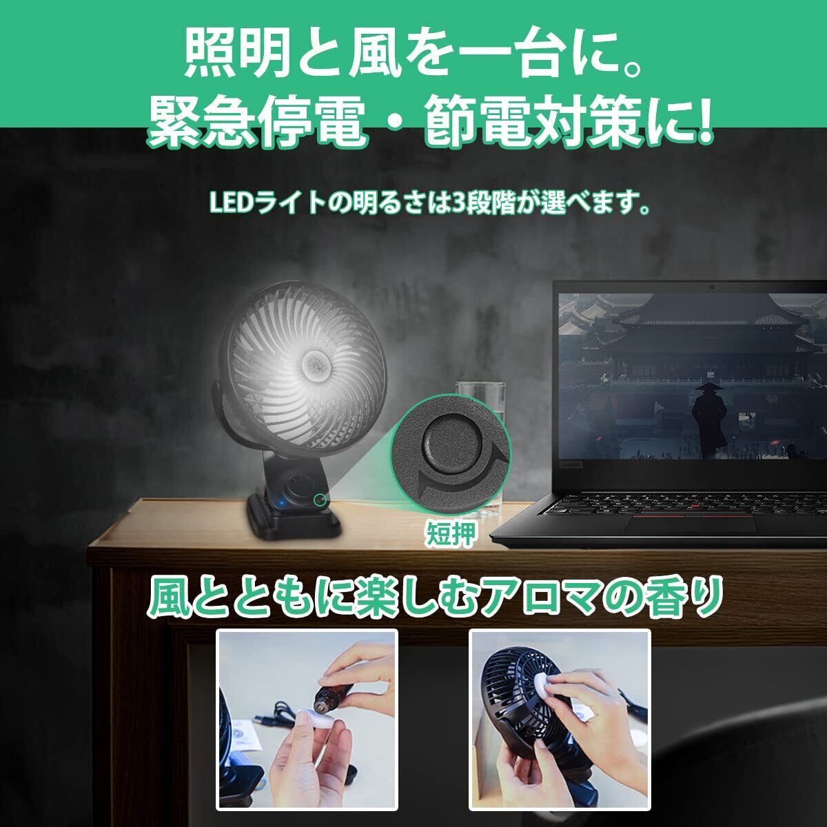 【自動首振り&10000mAh】 卓上扇風機 充電式 静音 クリップ 小型扇風機 USB 360度角度調整 風量無段階調節 最長107時間連続使用 LEDライト 強風 アロマ対応 オフィス 車 アウトドア 直径16cm ブラック