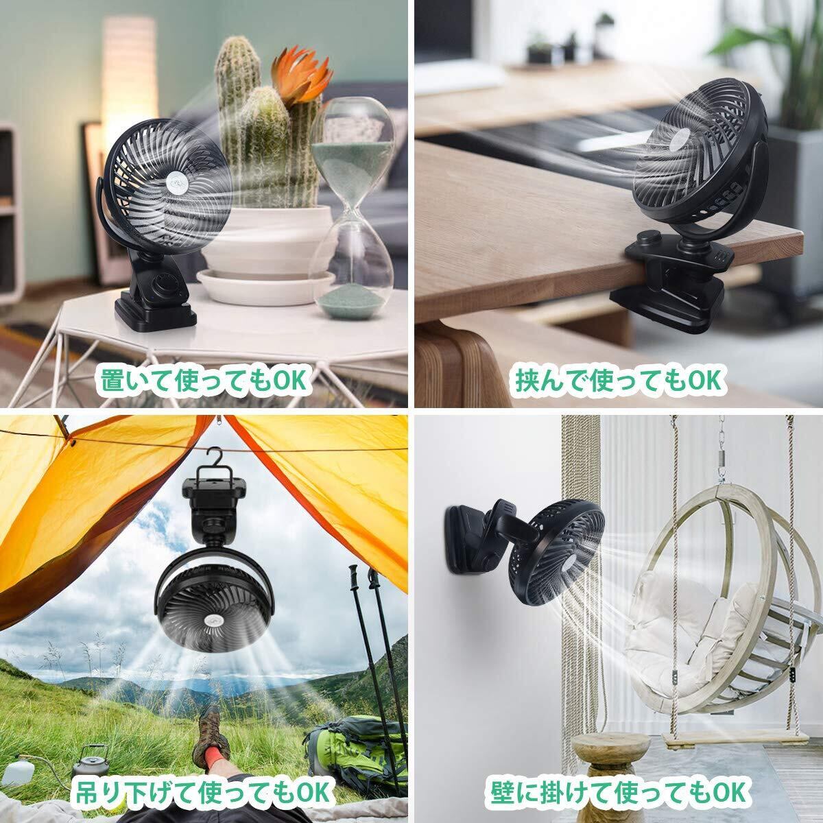 ❆彡【クリップ&卓上&壁掛け&吊下げの4WAY仕様】クリップ式で様々なところに挟んで使用が可能。卓上に置いても使えます!本体底面に吊り下げ用フックがあり、テント内に吊り下げて使えます。壁掛け用フック穴が本体底面に設置してあり、壁に掛けても使えます。自宅やオフィス、アウトドア、どこでも涼しく快適に!