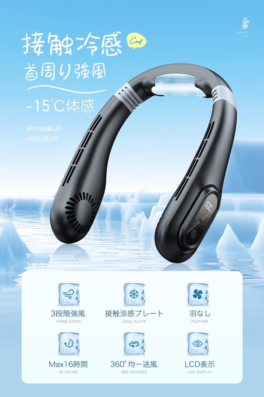 首掛け扇風機 ネックファン 携帯扇風機 【2025夏モデル&涼感プレート&LCD液晶ディスプレイ】 小型 扇風機 ポータブル扇風機 軽量 羽根なし 15db静音 コンパクト 大風量 ハンズフリーファン 3段階風量調整 16時間連続使用 Type-C充電式 節電 熱さ/高温対策/花見/花火大会/防災グッズ/通勤通学/旅行 母の日 父の日 プレゼン
