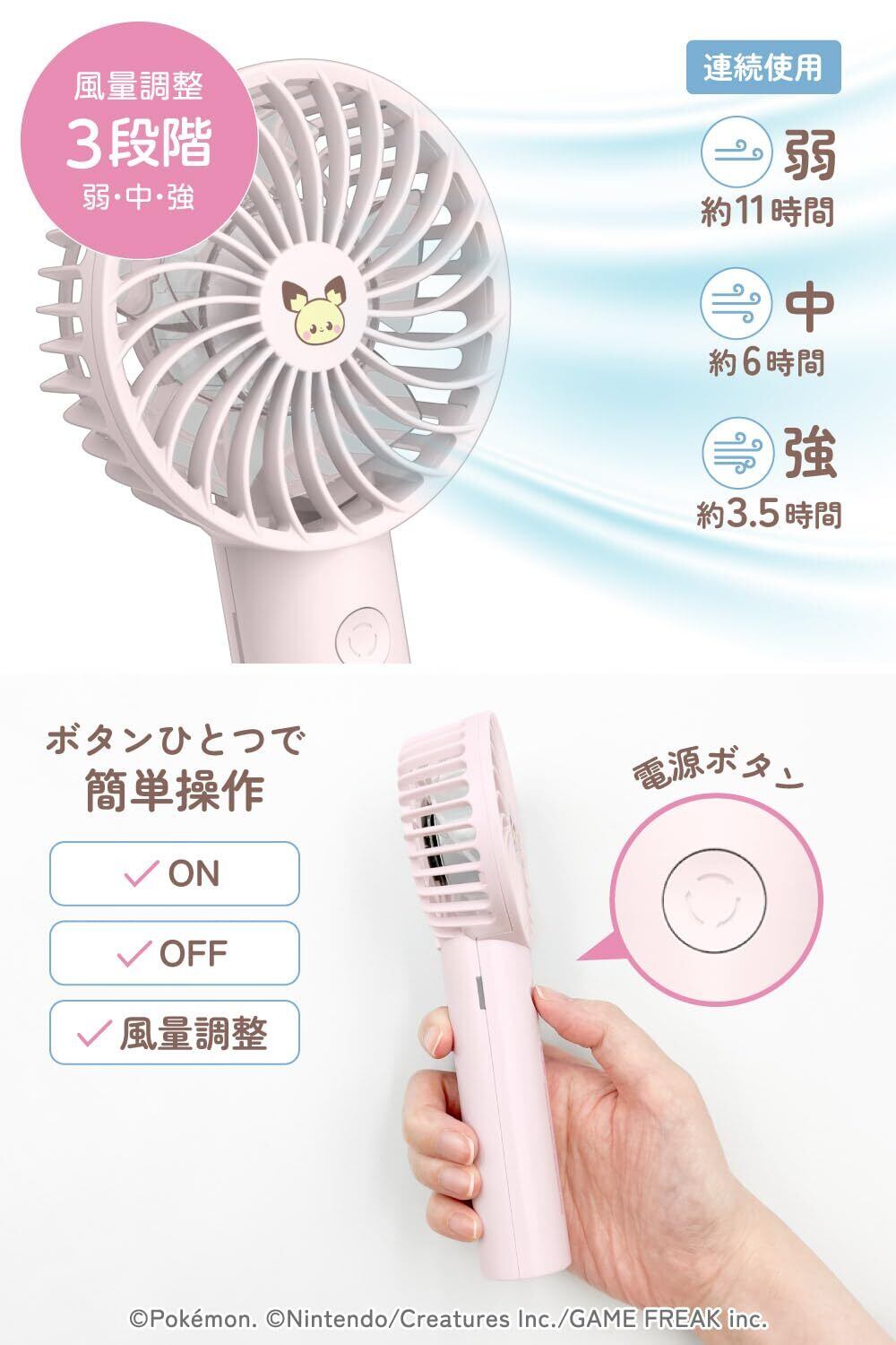 ポケピース ハンディファン (ピチュウ&マホミル ピンク) スタンド付属 風量調整機能 軽量&コンパクト手持ち扇風機 卓上扇風機 ギフト プレゼントに最適 USB充電 Type-C対応