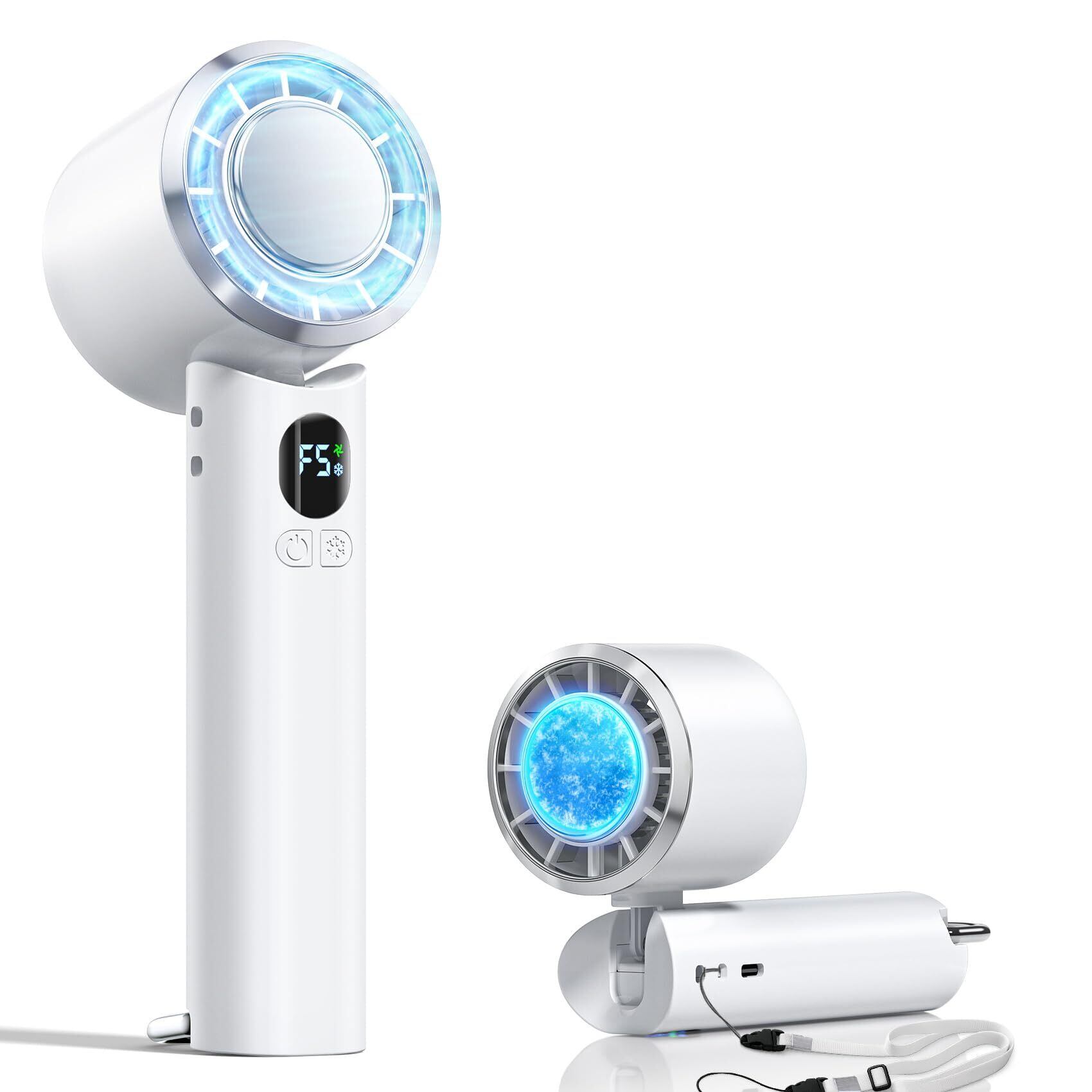 【2025革新&超高速モーター搭載】 携帯扇風機 冷却プレート付き ハンディファン 強力 1-199無段階風量調節 -22℃瞬間冷却 首掛け扇風機 ミニ 卓上扇風機 手持ち携帯ファン 折り畳み USB充電式 6800mAh大容量 LEDディスプレイ スタンド付き 5枚羽 軽量 小型 低騒音 スポーツ観戦/通勤/通学/車中泊/花火大会/山登り/旅行用 熱中症対策 暑さ対策(ホワイト)