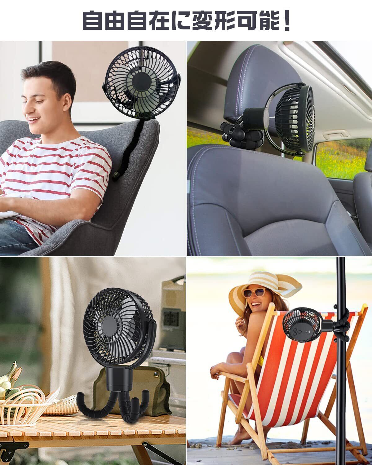 【10000mAh充電池内蔵&どこでも涼しい】大容量10000mAhのリチウムイオンポリマー電池を内蔵しています。フル充電の場合、最小モードで約56時間の連続使用ができます。長時間の外出時も快適にお過ごしいただけます。変幻自在のフレキシブルアームで、使う場所にぴったりのカタチを作る3WAYポータブルファンです。「巻く」「吊るす」「置く」3つの使い方ができ、屋内外問わず様々なシーンで活躍いたします。