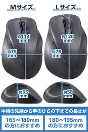 ■中指の先端から手のひらの下までの長さが165~180mmの方にピッタリとフィットするMサイズです。