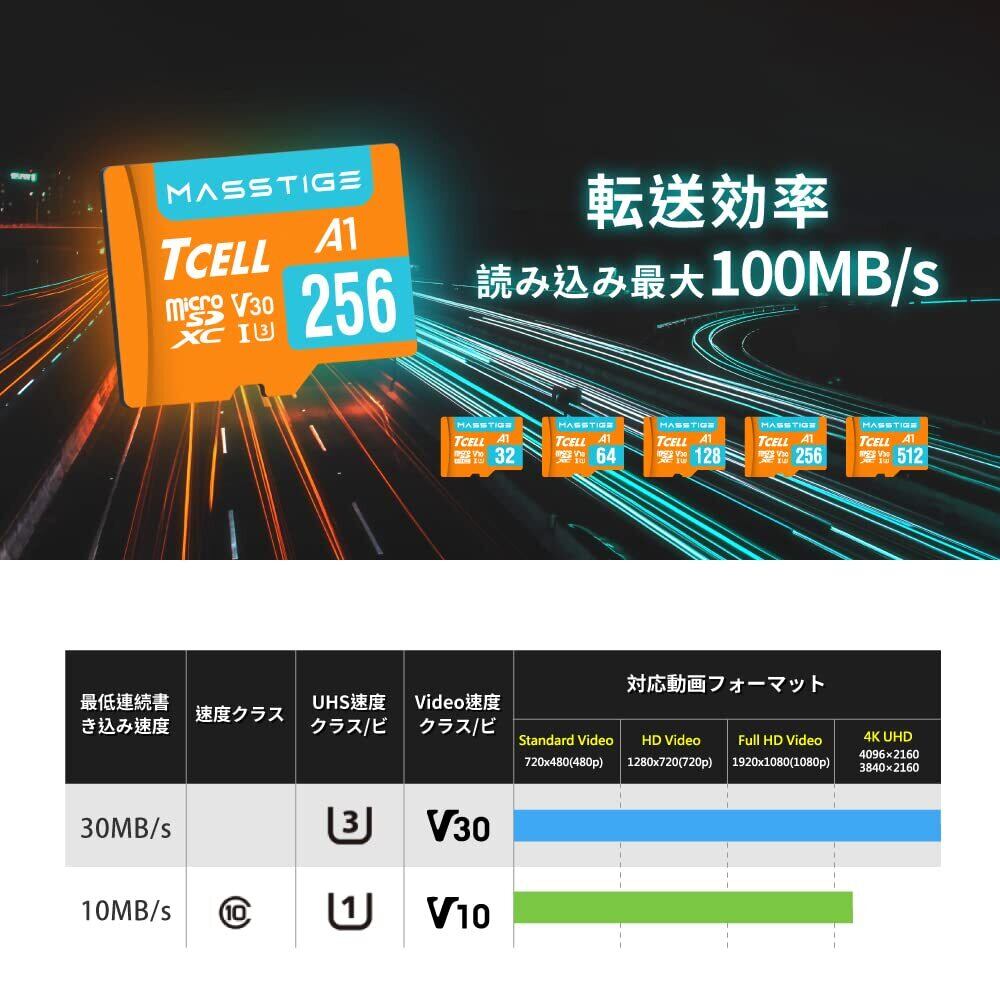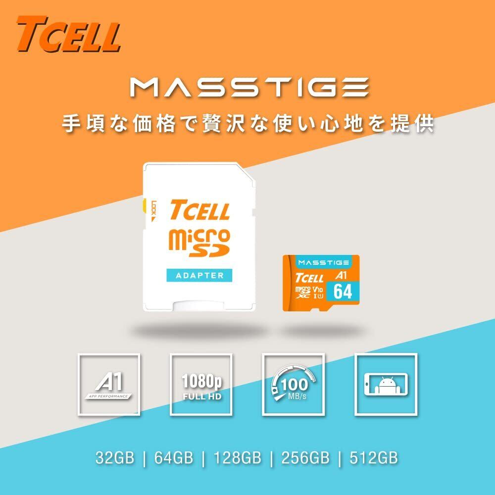TCELL MASSTIGE 64GB 台湾製 microSDXC メモリカード アダプター付き - A1、USH-I U3、V30、4K、マイクロSDカード、読み込み最大100MB/秒、フルHDと4K UHD microSD、Nintendo Switch 動作確認済 | kki