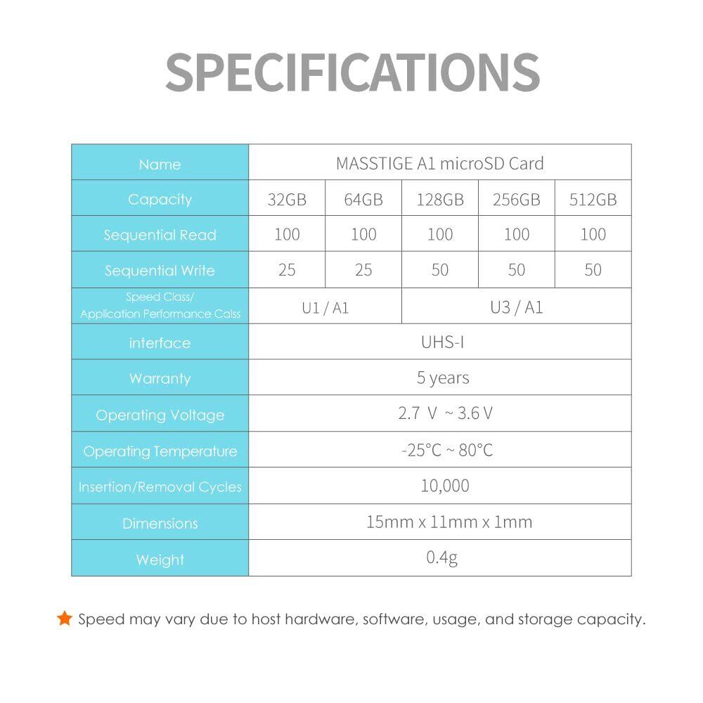 デバイスのストレージを拡張するのに最適:TCELL Masstige microSDメモリーカードは、デバイスのストレージを拡張するための最良の選択です。スマートフォン、カメラ、ドローン、アクションカメラ、ゲーム機、タブレットなどと互換性があります。