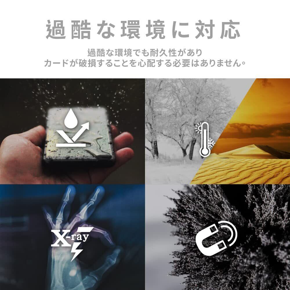 複数の保護機能:防水、耐温性、X線耐性、非磁性、衝撃および振動に強いです。優れたmicroSDカードは極端な環境下でも耐久性があります。カードの損傷を心配する必要はありません。