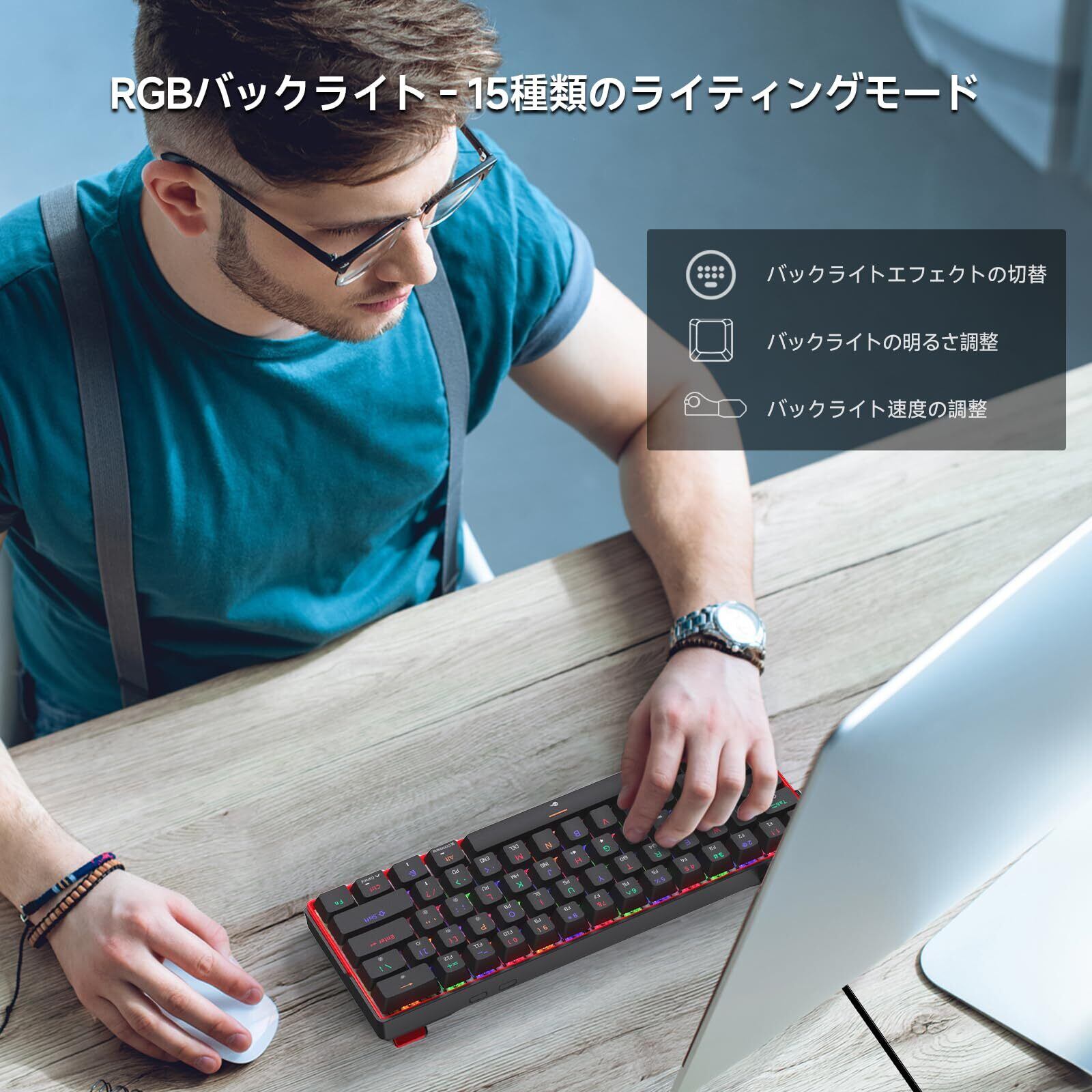 K61SE メカニカルゲーミングキーボード 60%配列 61キー RGBバックライト 赤軸スイッチ 全キー無衝突 ソフトウェア&マクロ対応 Windows/Mac対応 英語配列(ブラック) (ブラック, 赤軸)