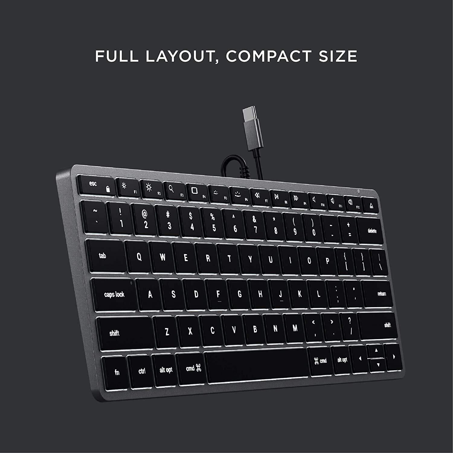 Satechi スリム W1 USB-C キーボード 有線 バックライト US配列 テンキー付き, 有線キーボード (MacBook Pro, iMac, Mac Mini など Macデバイス対応, iPad キーボードとしても使用可) (1ゾーン)