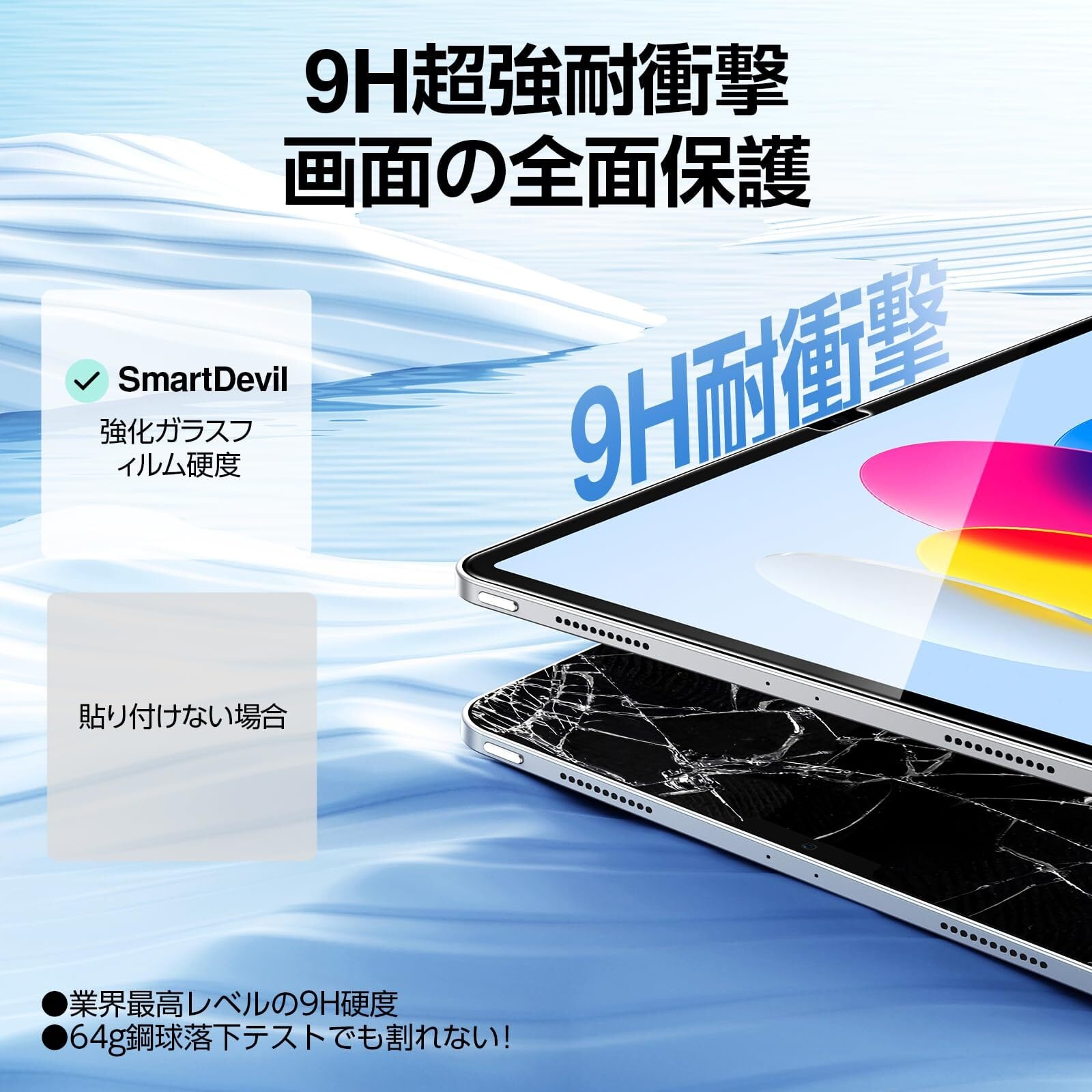 「Smart Box」SmartDevil iPad 11世代 2025 用/iPad 10世代2022用 保護フィルム 自動除塵 超簡単貼り付け 落下保護 気泡ゼロ 滑らかな手触り 指紋防止 アイパッド 11世代/10世代用 強化ガラス