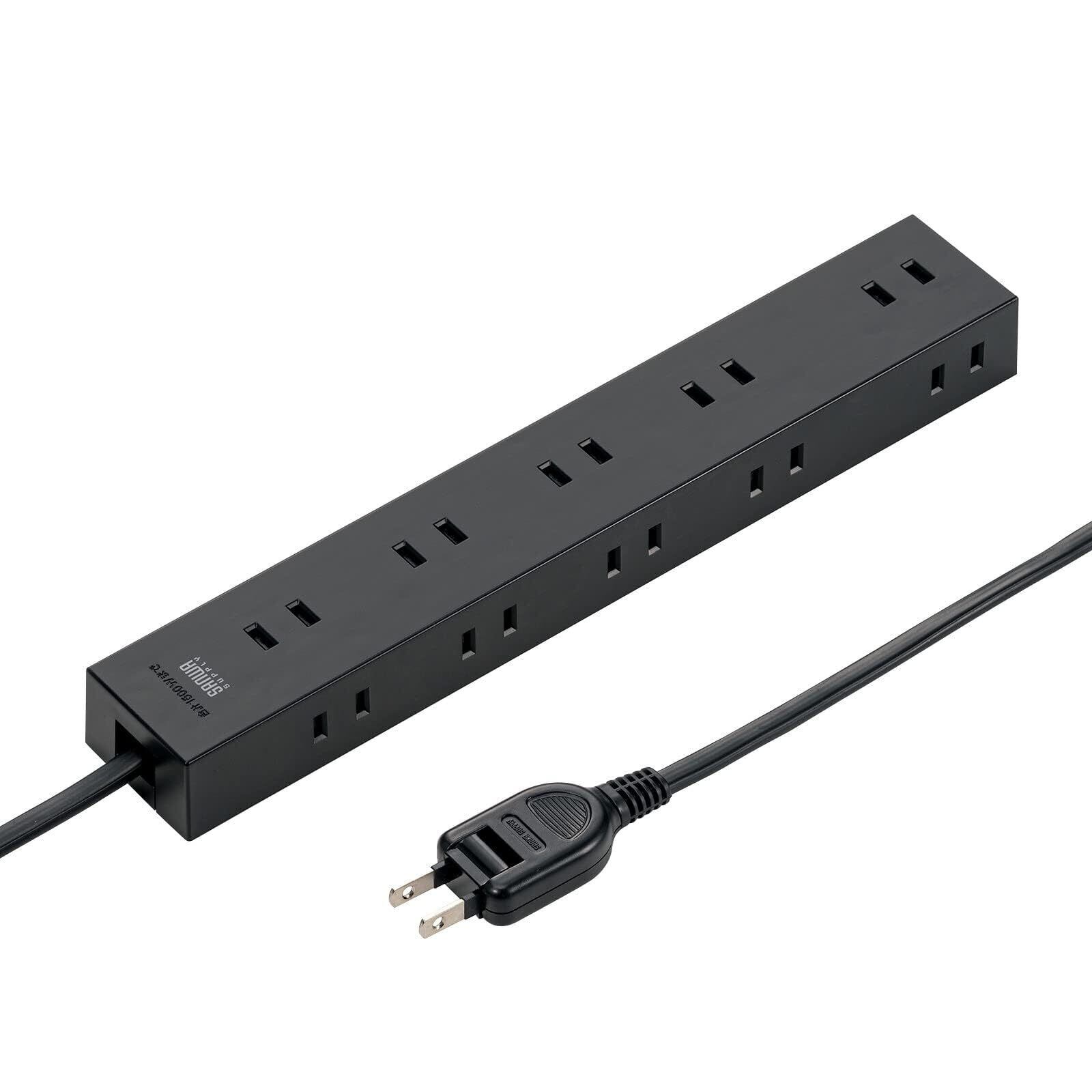 サンワサプライ(Sanwa Supply) 電源タップ 10個口・2P (1m) たくさん挿せるレイアウト 強力ネオジムマグネット ほこりシャッター スイングプラグ ブラック TAP-2210-1BK | kki