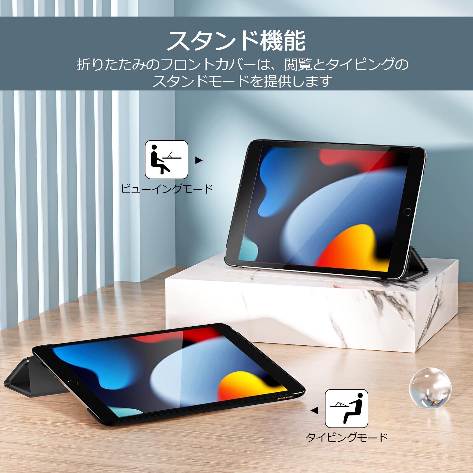 ProCase iPad 9/8/7 ケース (2021 2020 2019) 半透明バックカバー スマートカバー 軽量 三つ折りスタンド iPad 10.2" 対応 -ブラック