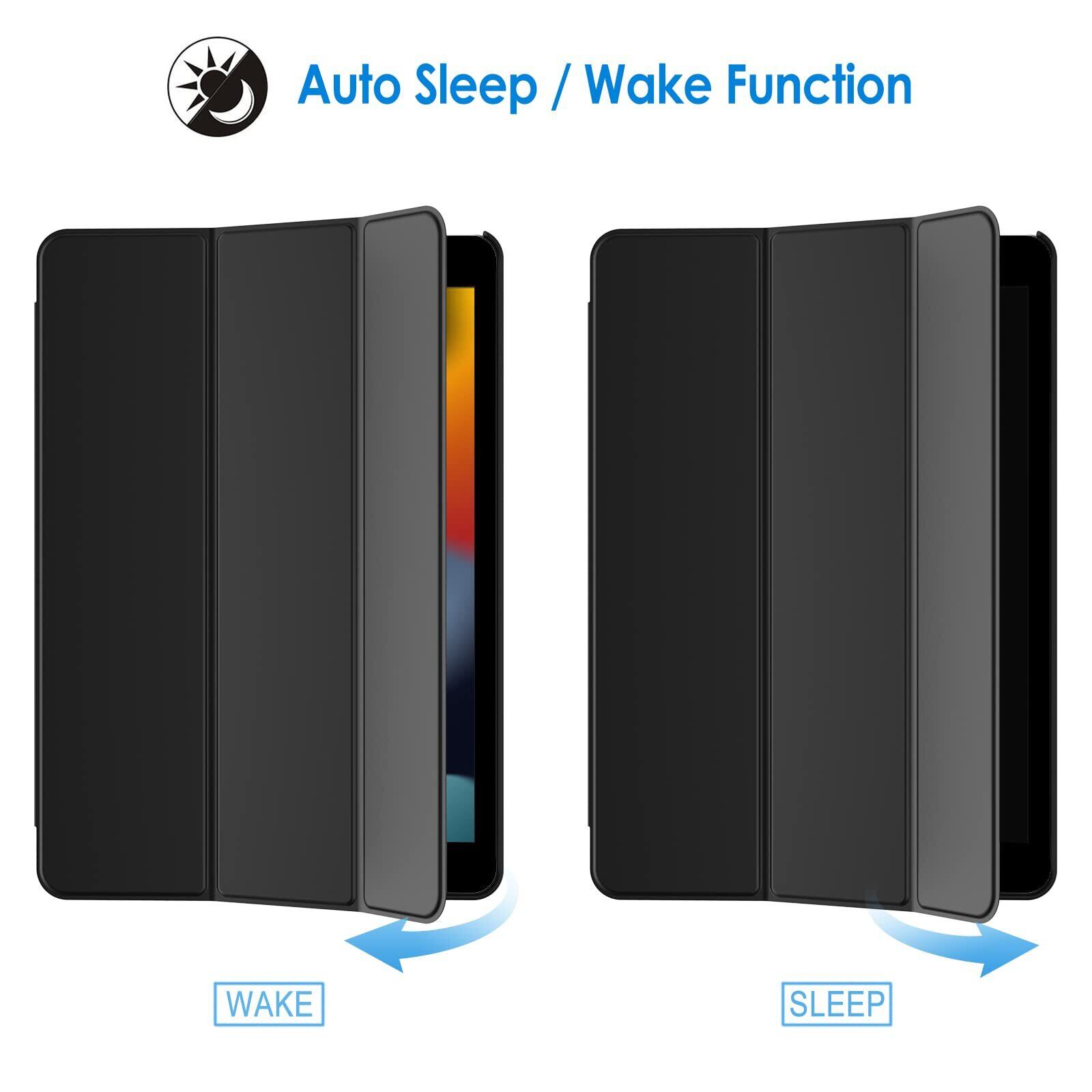 JEDirect iPad 9/8/7 ケース (10.2インチ 2021/2020/2019モデル 第9/8/7世代用) ケース 三つ折りスタンド 耐衝撃カバー オートウェイクアップ/スリープ機能 (ブラック)