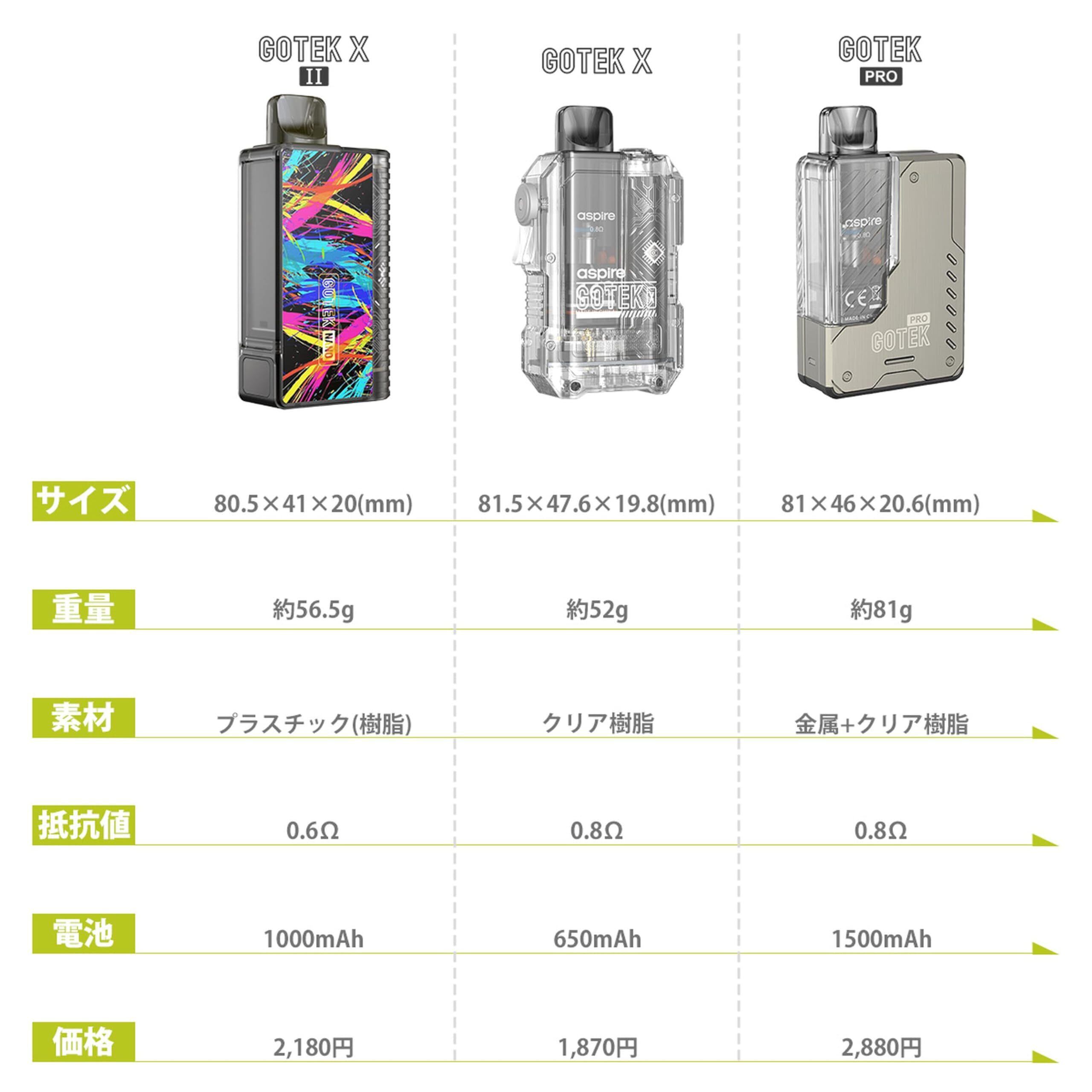 【NANO】 Aspire(アスパイア) GOTEK Nano(ゴーテック ナノ)デジタルインジケーター搭載!!FlavorKitchenオリジナルミニポーチ同梱/VAPE ベイプ 電子タバコ スターターセット (Ice Green)