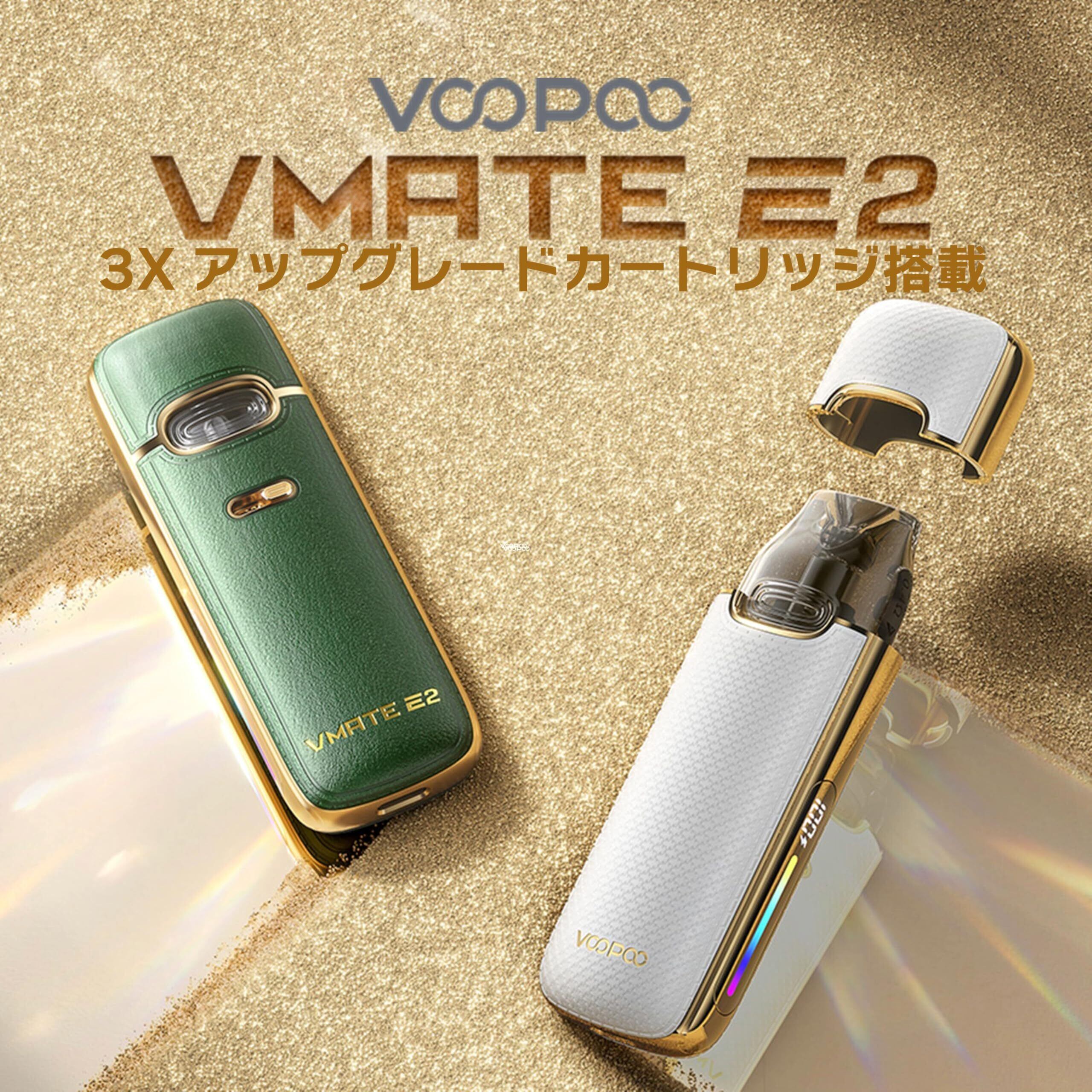 【カートリッジ互換情報】 本製品で使用している 3Xアップグレード「VMATE トップフィルカートリッジ」(Vmate Pod Cartridge V3)はVMATE Cartridge V2と相互互換製品となるため全てのVMATEシリーズ製品で使用が可能です。ただし、カートリッジの抵抗値により使用できるデバイスが異なりますのでご注意ください。 【0.7Ωは全商品で使用可能】 VMATE E2(本製品)/VMATE i2/VMATE PRO/VMATE MAX/VMATE E/VMATE INFINITY EDITION/VMATE/V.THRU Pro 【0.4Ωが使用可能な製品】 VMATE E2(本製品)/VMATE i2/VMATE PRO power edition/VMATE MAX