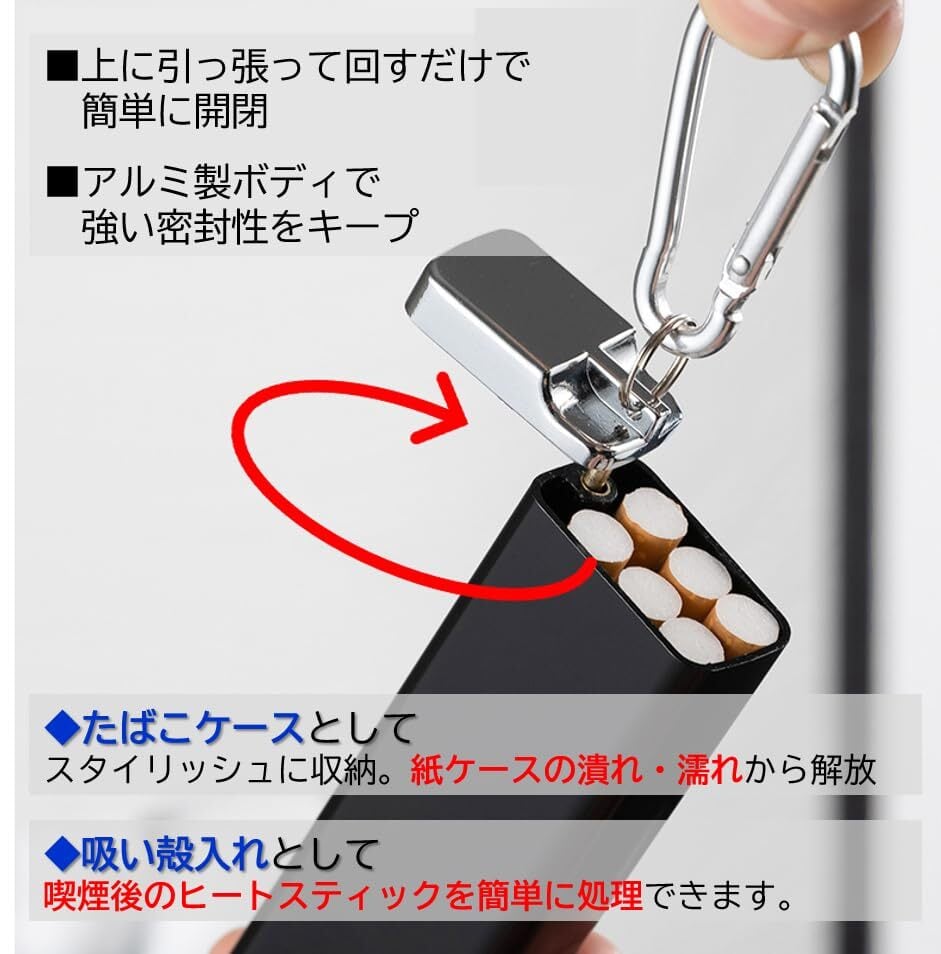 【高級感のあるメタリック素材】アルミ製の本体で高級感ある携帯灰皿です。アイコス対応で加熱式タバコ用のヒートスティックや紙巻たばこの吸い殻入れとして使えます。
