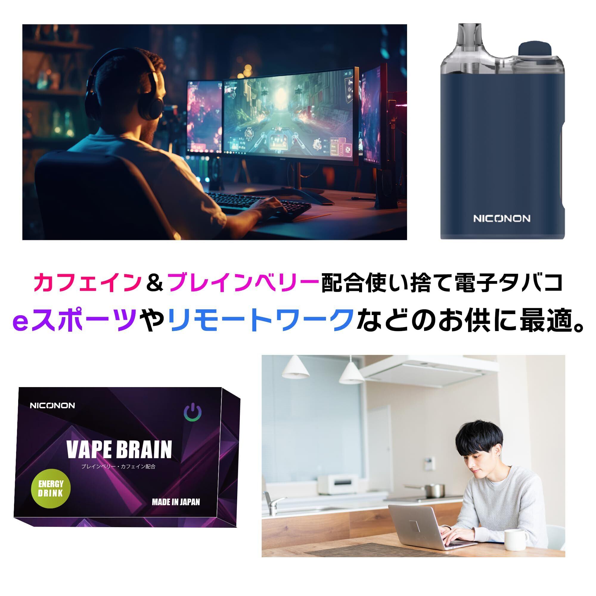 NICONON BRAIN VAPE ベイプ 電子タバコ シーシャ フレーバー 使用可能 使い捨て 持ち運び vape 約8000回使用可能 カフェイン、ブレインベリー配合 ゲーミング電子タバコ ニコチンレス (エナジードリンク風味)