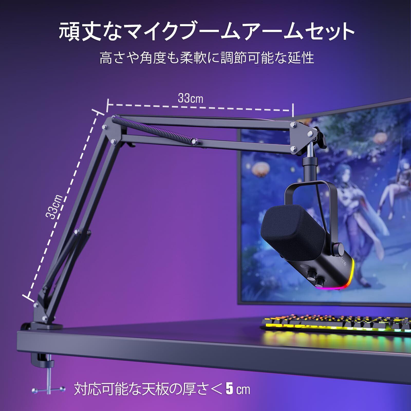 FIFINE XLR/USB ゲーミングマイクセット ストリーミング ポッドキャスト用 ダイナミックマイク PCマイク ブームアームスタンド付き RGB機能付き ミュートボタン ヘッドフォンジャック ボーカル ボイスチャット 録音 配信 実況 ゲーム 黒 AmpliGame AM8T | kki