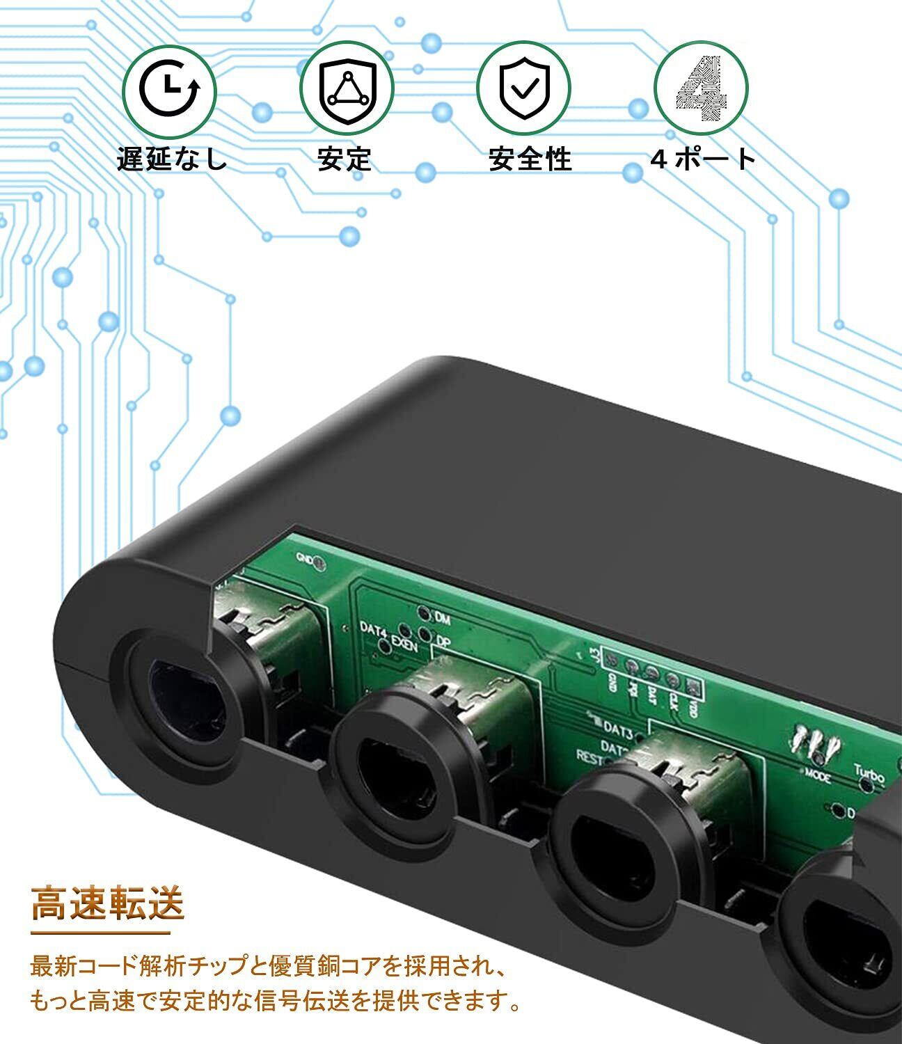 「アップグレード版」Tukebon switch用GCコントローラ変換アダプタ GCコントローラー接続タップ ニンテンドー ゲームキューブ コントローラ接続タップ 4ポート 最大8人同時にプレイ 大乱闘スマッシュブラザーズ対応 switch OLED/Switch/Wii U/PC用