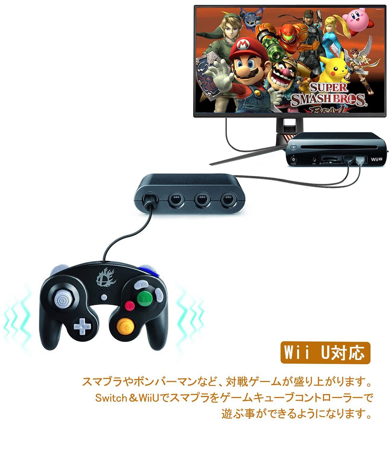 『Switch&Switch 有機ELモデル&Wii U&PC対応』任天堂スイッチ、Switch 有機ELモデル、PC、Wii Uの周辺機器の接続タップです。 これによりお手持ちの使い慣れたGCコントローラがWii U/Nintendo Switchでそのまま使え、従来の操作感で最新作を楽しめる。大乱闘スマッシュブラザーズに特に適しています。スマブラやボンバーマンなど、対戦ゲームが盛り上がります。