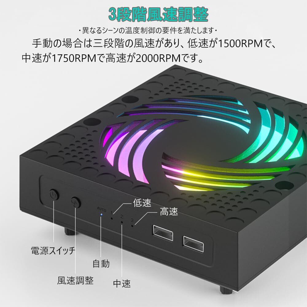 Xbox Series X用冷却ファン クーリングファン USBクーラー USBファン RGB LEDライト 快速冷却 静音低騒音 知的温度制御 自動作業/停止 3段階速度調整 取り付け簡単 熱対策 排熱 防塵 耐久性 2つUSBポート 取り外し可能なフック2個付き XboxシリーズX コンソール用アクセサリ