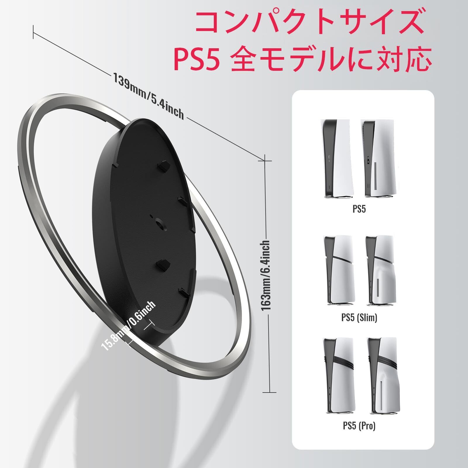 【新型PS5 Slim/PS5 PRO/ PS5 用 縦置き スタンド】for PS5/PS5 Slim/PS5 Proコンソールに対応し、PS5スタンドはコンソールを直立状態に保ちます。底面には滑り止めのシリコンリング、本体固定用のネジが付属。これにより、PS5コンソールへの意外なぶつかりによる落下を防止し、コンソールを安定した位置に維持します。