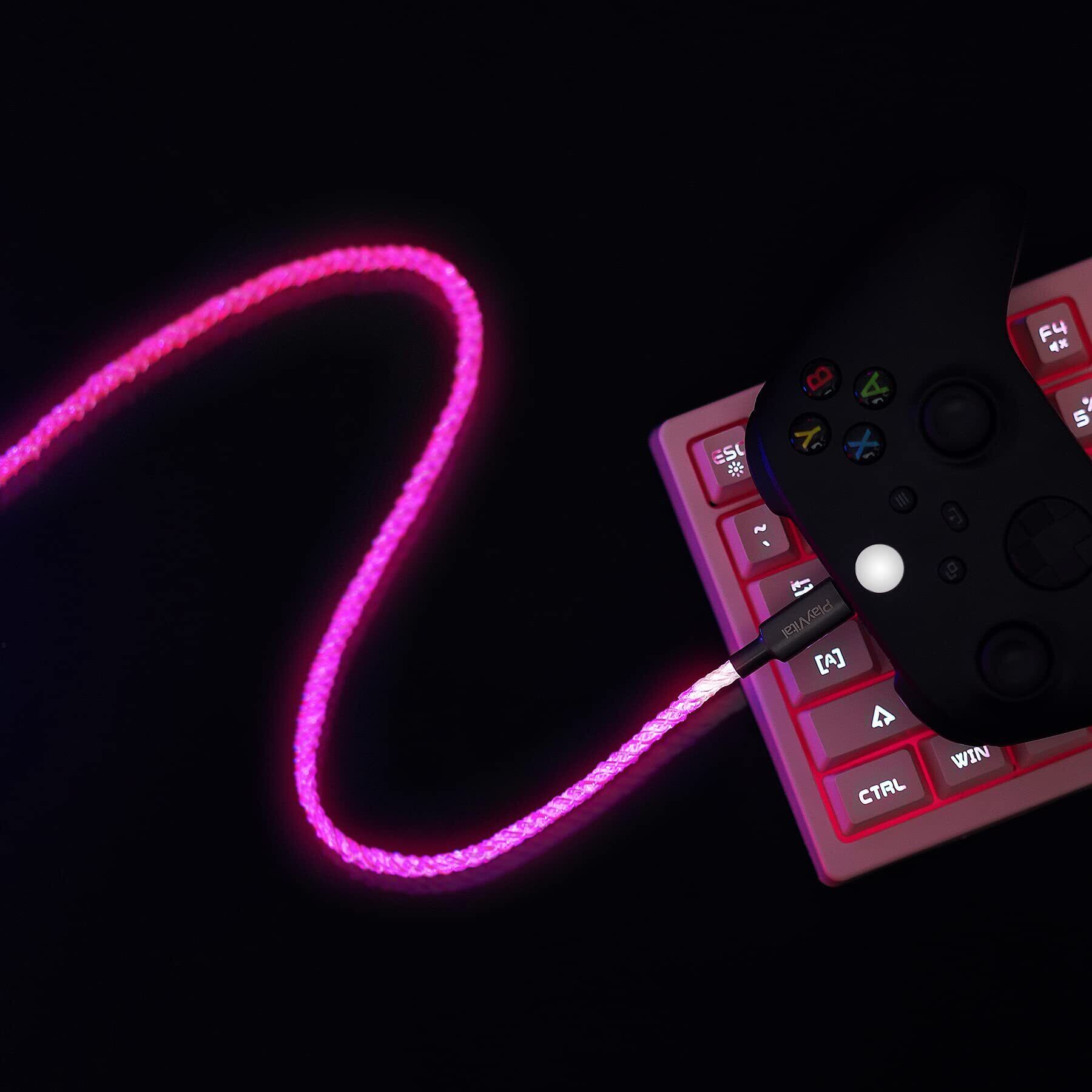 PlayVital ps5コントローラーに対応用1Mイルミネーション充電ケーブル、ゲームパッド用USBタイプC充電コード、Xbox Core/Elite Series 2 / Switch Proコントローラー用ユニバーサルLEDライトアップデータコード