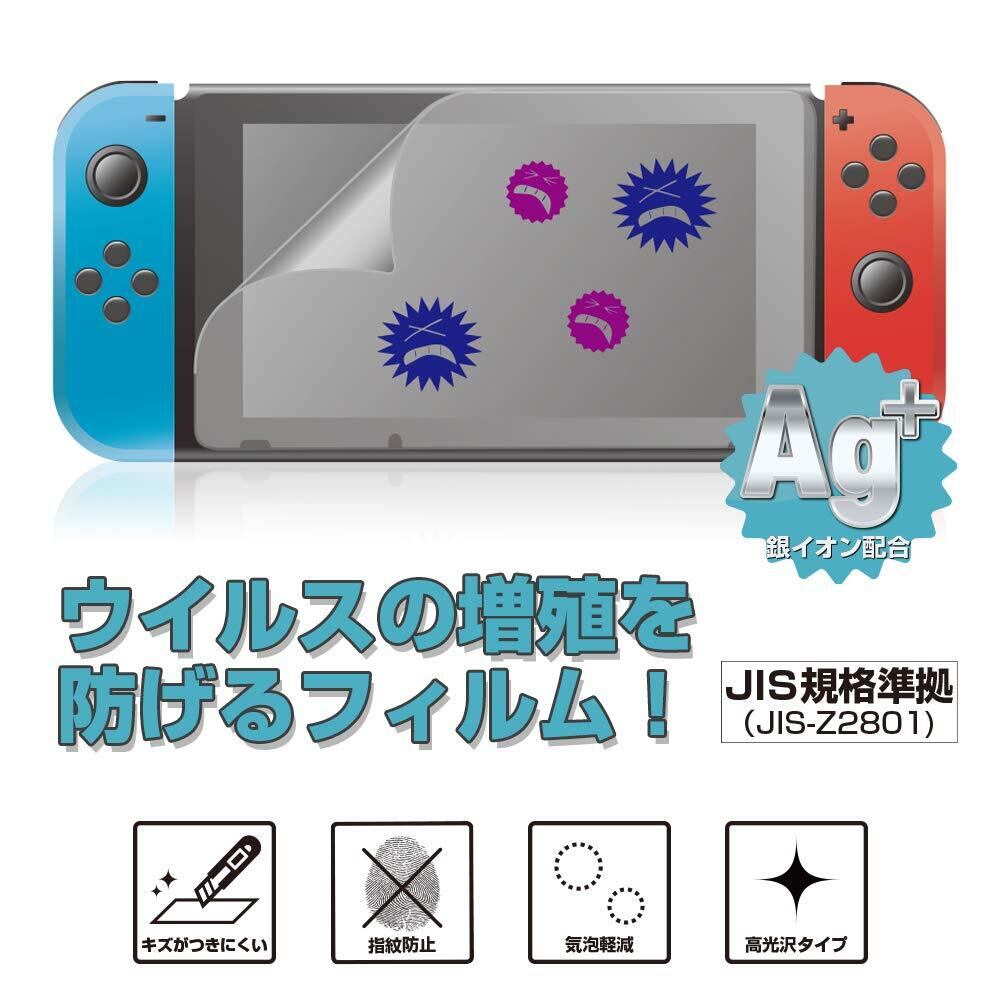 アローン Nintendo Switch用 抗菌フィルム 抗ウイルス ウイルス除去 Ag+ 高光沢 防指紋 気泡ゼロ 傷がつきにくいハードコート加工 スイッチ 日本メーカー