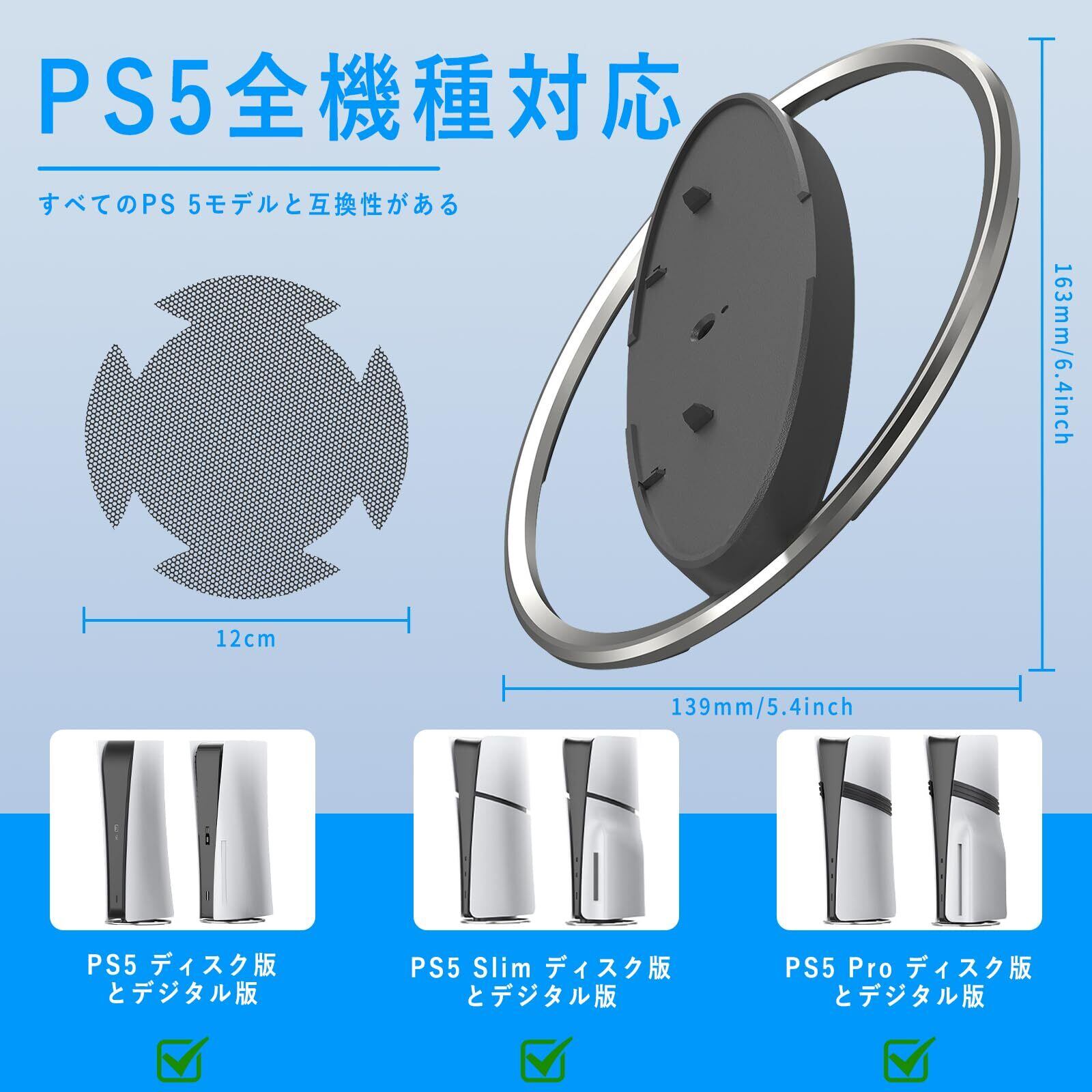 PS5/ PS5 Slim/ PS5 Pro 縦置きスタンド【防塵ネット2枚付属】ps5 スタンド、ps5 pro スタンド 縦置き プレステ5 縦置きスタンド PS5スリム/PS5コンソールデジタル/ディスク版用 ps5 周辺機器 アクセサリー 防塵ネット2枚付属 固定ネジ付 樹脂 インストールps5 本体全機種対応・金属合金製・高硬度ABS | kki