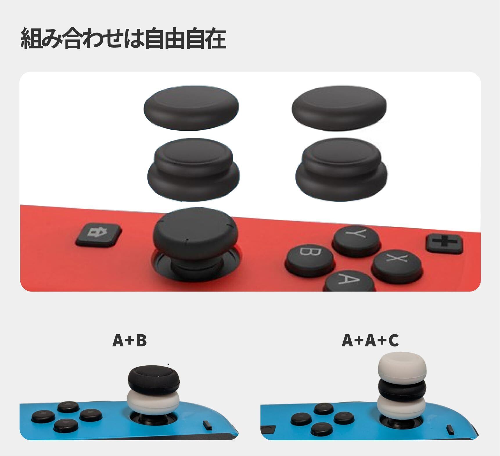 【Plus版】Switch Joy-Con コントローラー専用 フリーク FREEK グリップ キャップ 3種 6個(キャップ:ロータイプ 凸型 凹型 ハイタイプ/色:ブラック ホワイト)Grip Cap Kit Plus for Gaming Controller 重ね付け可能 ゲーム スティック エイム 向上 FPS アシスト - The Good Gaming