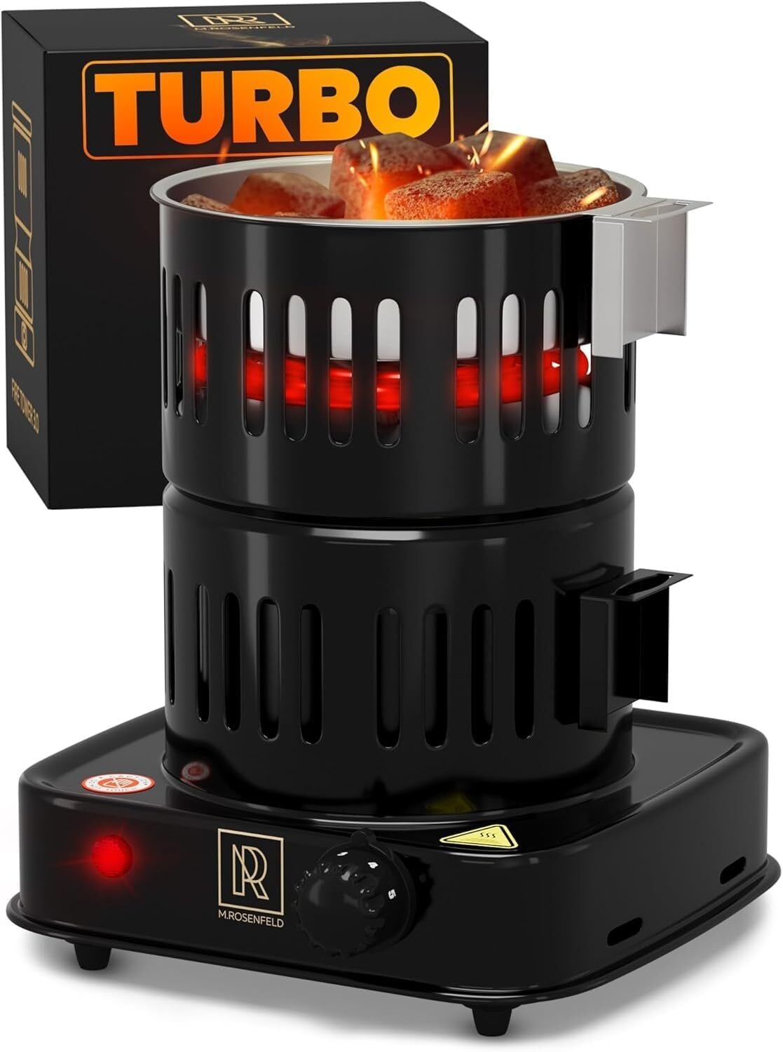 シーシャ コンロの革命、M. ROSENFELDの800W TURBOは、炭焼きシーシャの待ち時間を大幅に短縮。たった120秒で炭が赤熱し、豊かな煙を楽しめます。フッ素コートのスパイラルが温度ムラを抑え、理想的なシーシャ体験を提供。