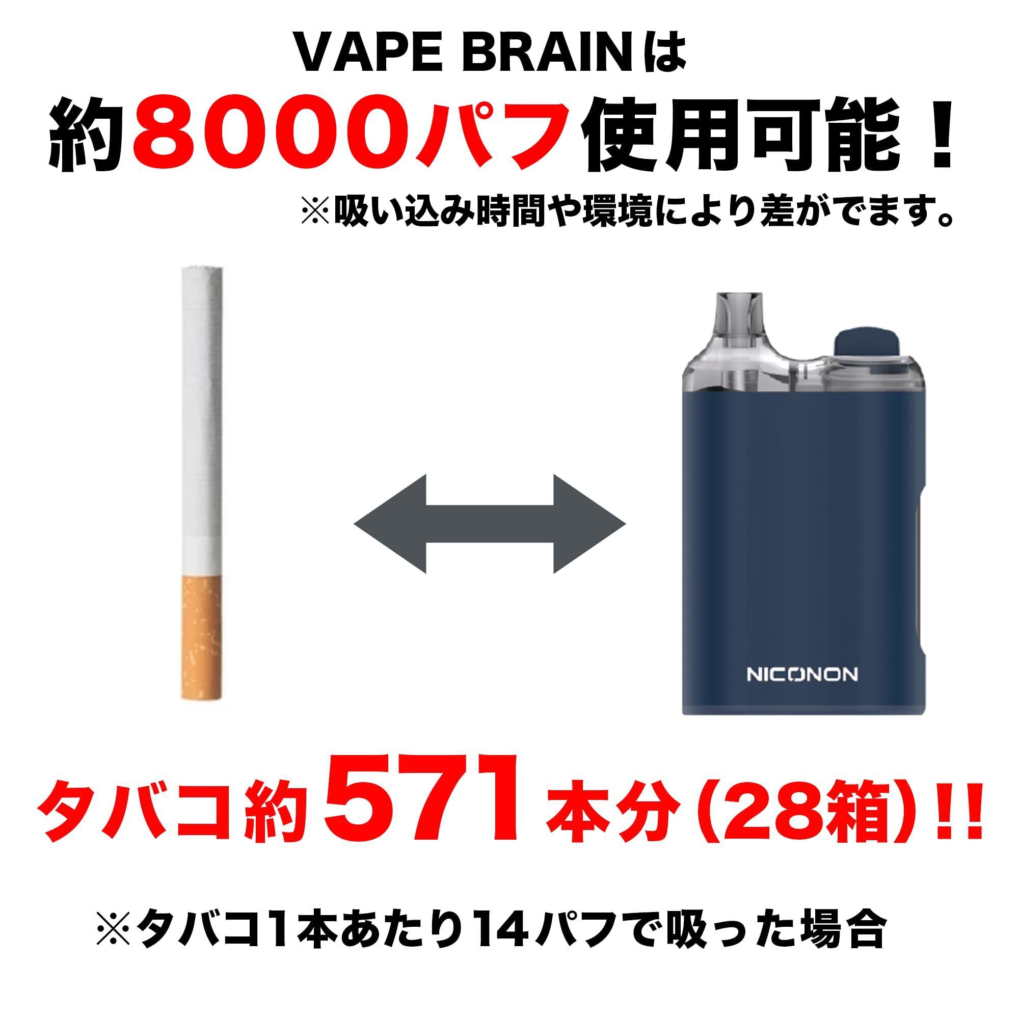 NICONON BRAIN VAPE ベイプ 電子タバコ シーシャ フレーバー 使用可能 使い捨て 持ち運び vape 約8000回使用可能 カフェイン、ブレインベリー配合 ゲーミング電子タバコ ニコチンレス (エナジードリンクメンソール風味)