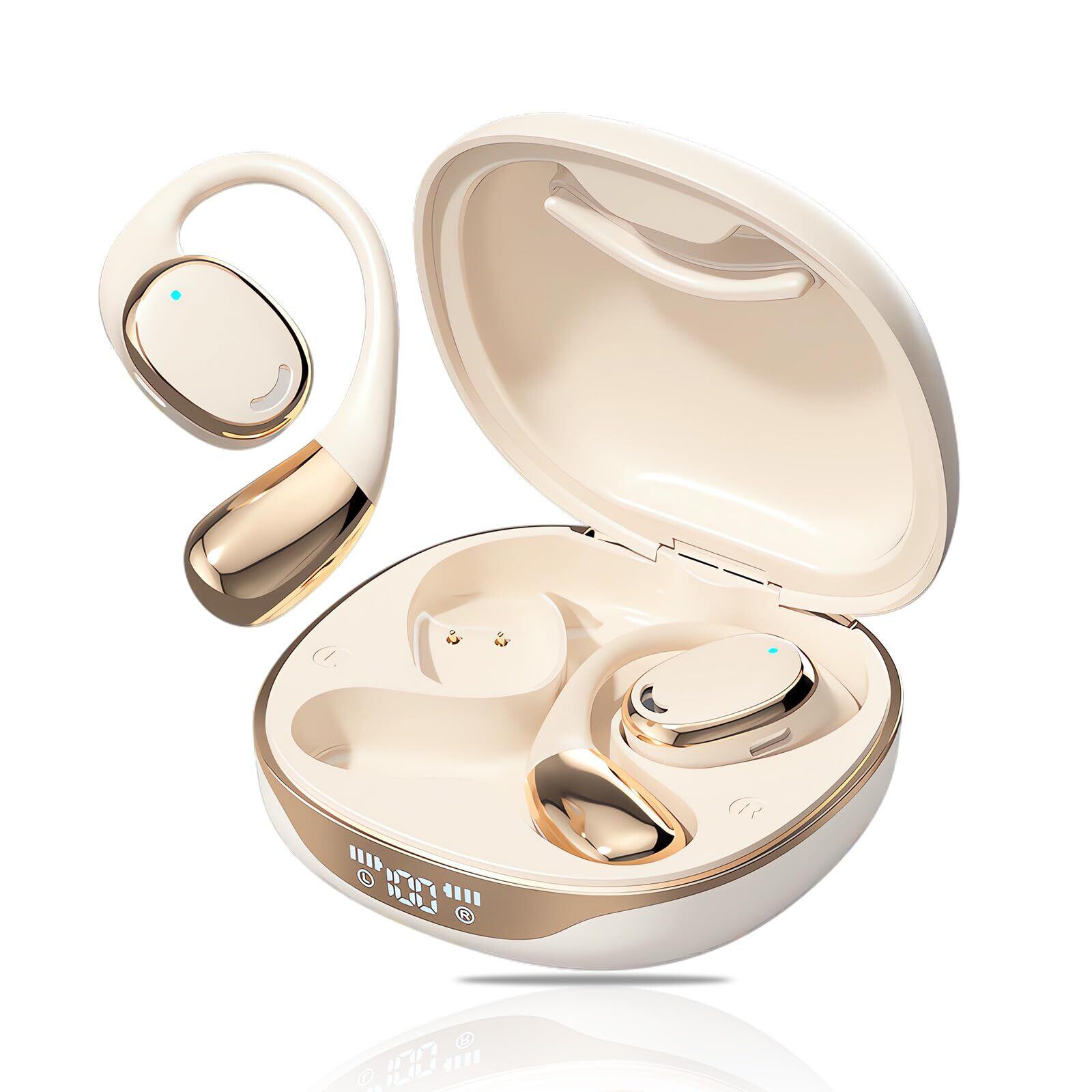 イヤホン bluetooth ワイヤレスイヤホン【2025年業界高水準 オープンイヤーヘッドホン】業界トップ Hi-Fi音質Bluetooth5.49 瞬時接続 ブルートゥースイヤホン 最大60時間再生 骨伝導イヤホンの革新 耳掛け式 耳を塞がない 空気伝導 マイク付き Type-C急速充電 超軽量 LED ディスプレイ残量表示 両耳 片耳 IPX7防水 通勤/スポーツ (アイボリー)