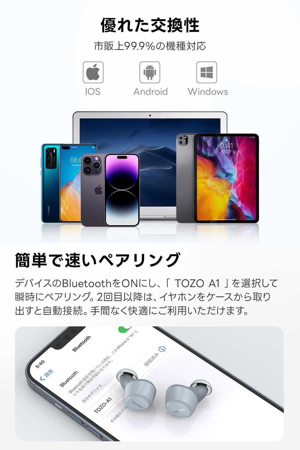 【音質の極み、聴覚の限界を超える】 当社独自開発の超高感度ドライバーにより、音声データを徹底的に最適化。高周波数帯域や左右チャンネルの差異まで、正確かつ効率的に伝送し、従来の音質を超えた驚異的な音響体験を提供します。低音の迫力から高音の解像度まで、音楽のあらゆる細部が自然でありながら力強く再現され、まるでライブ会場にいるかのような臨場感を実現。✨極上の音質と圧倒的な操作性を両立し、音楽本来の魅力を引き出し、あなたの聴覚を新たな次元へと導きます。 音楽はただの音ではなく、あなたの心を震わせ、感動を与える魔法のような力。TOZO A1ワイヤレスイヤホンで、音楽の真髄を体感し、全く新しい音の世界を開拓してください。