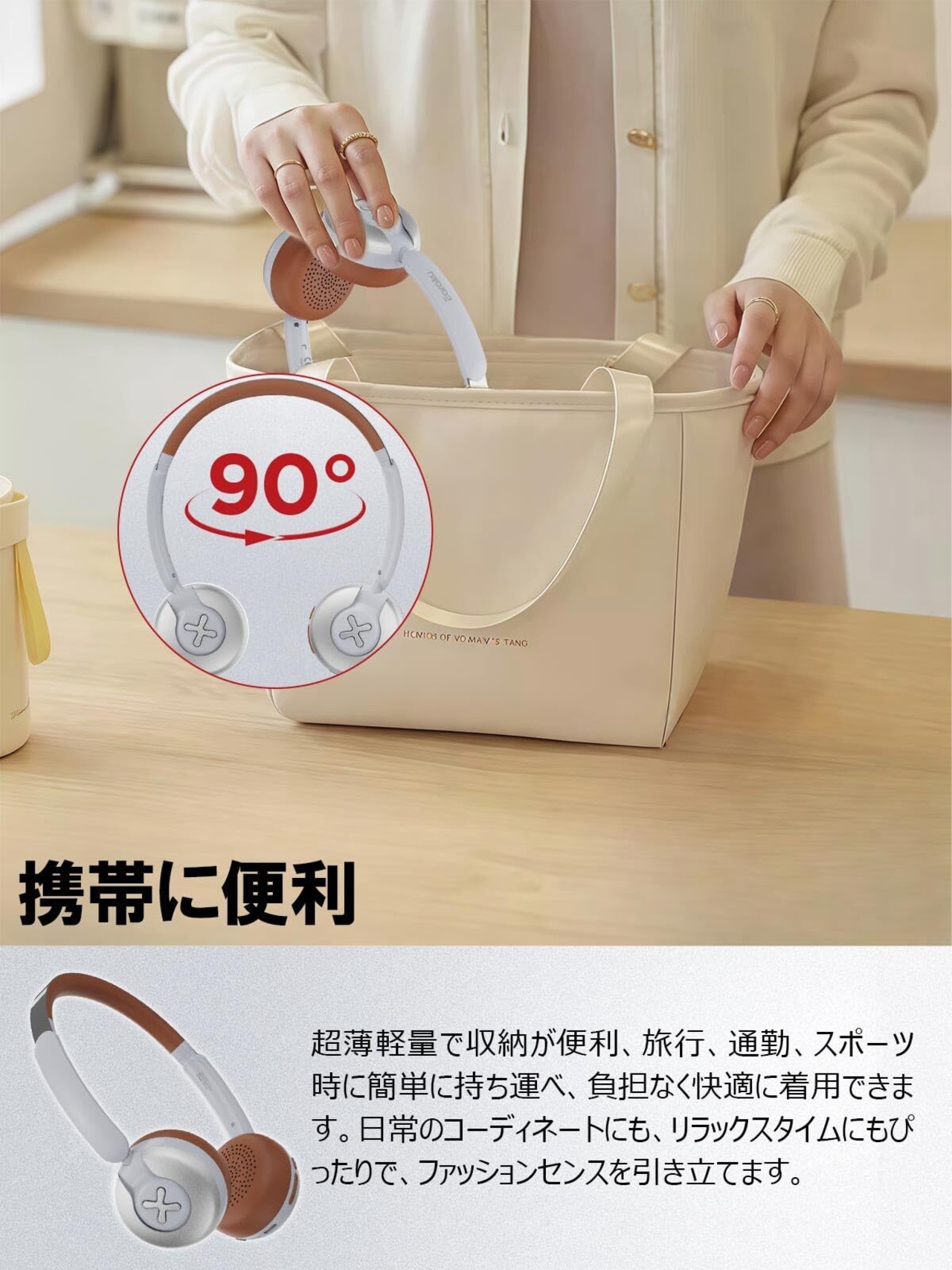 【Bluetoothワイヤレスヘッドホン】:最先端のBluetooth 5.4技術を搭載し、最大約10メートルの範囲で強力で安定した接続を提供します。電源ボタンを3秒間長押しすることで、ヘッドホンがすぐに起動し、Bluetoothペアリングモードに自動で切り替わります。さらに、最大2台のデバイスを同時に接続可能で、スマートフォンで音楽を楽しみながら、PCでのビデオ会議や通話もスムーズに対応できます。※再生可能な音源は1台のデバイスのみとなります。