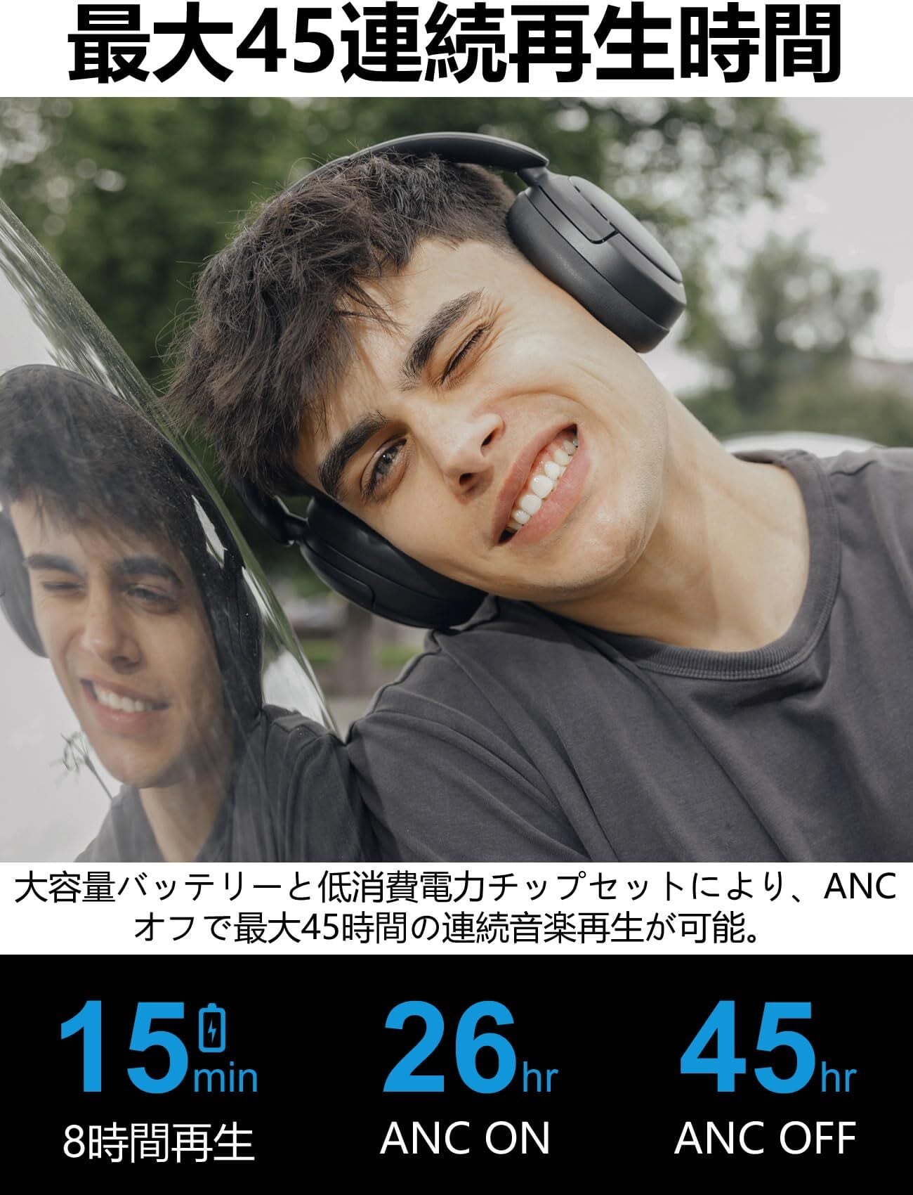 -44dBのアクティブノイズキャンセリング - 4つのANCモードを備えた高度なアクティブノイズキャンセリングで、最大-44dBのノイズキャンセリング深度を実現。 透明モードと風軽減モードで、アウトドアや旅行に最適です。
