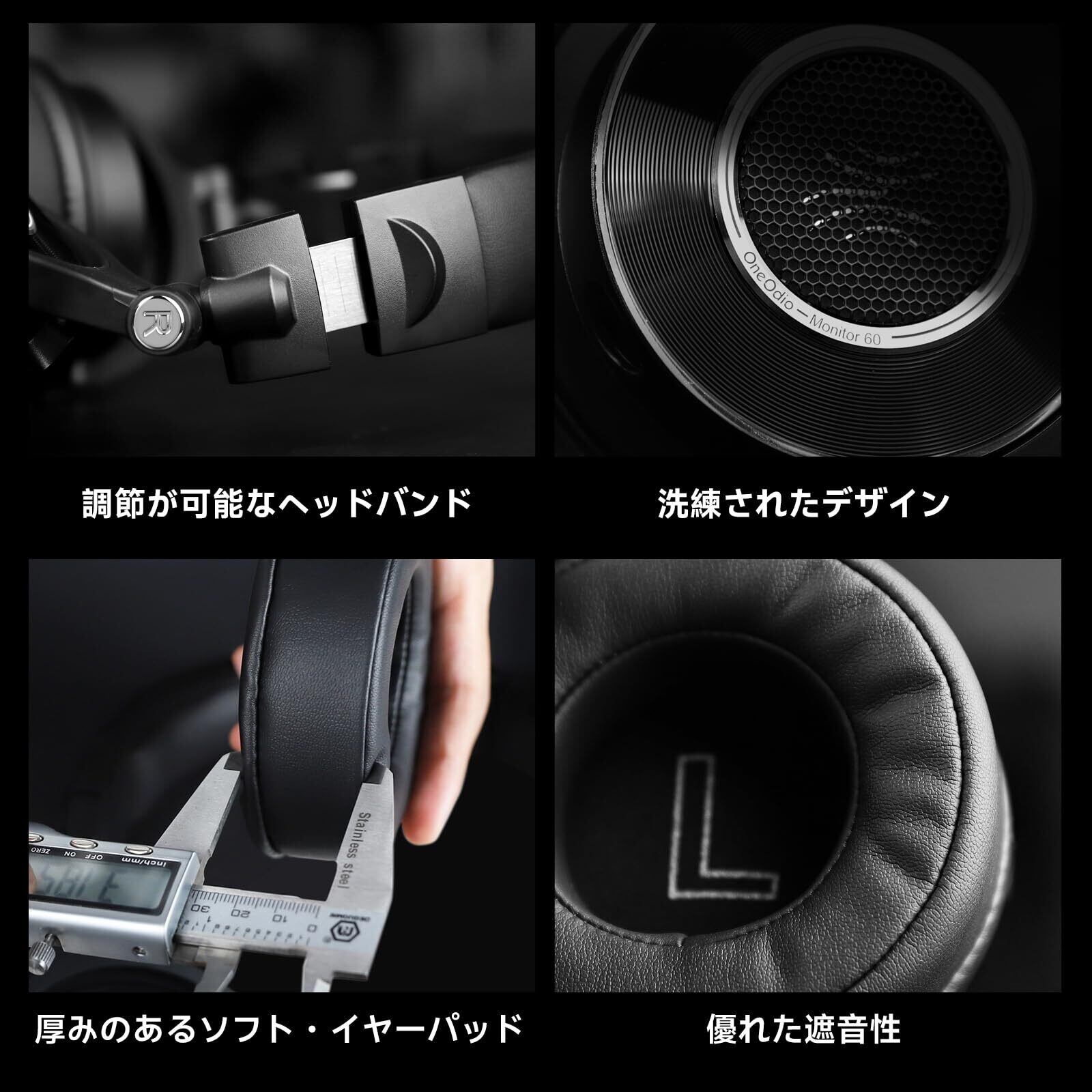 【VGP2024受賞】OneOdio Monitor 60 モニターヘッドホン 密閉型 有線 ヘッドフォン ハイレゾ対応 オーバーイヤーヘッドホン 着脱式 ケーブル 3本付き DJ ヘッドホン Youtube 音楽制作 生配信 DTM スタジオ レコーディング