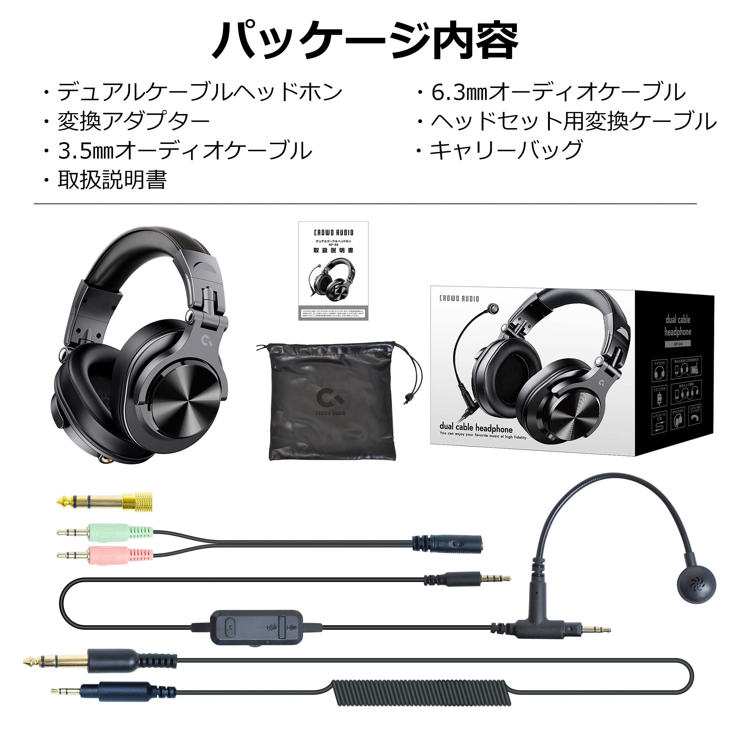 CROWD AUDIO | 6.5mm&3.5mm対応 デュアルケーブル ヘッドホン HP-04 | ケーブル着脱 有線 重低音 ヘッドフォン インカム 同時接続