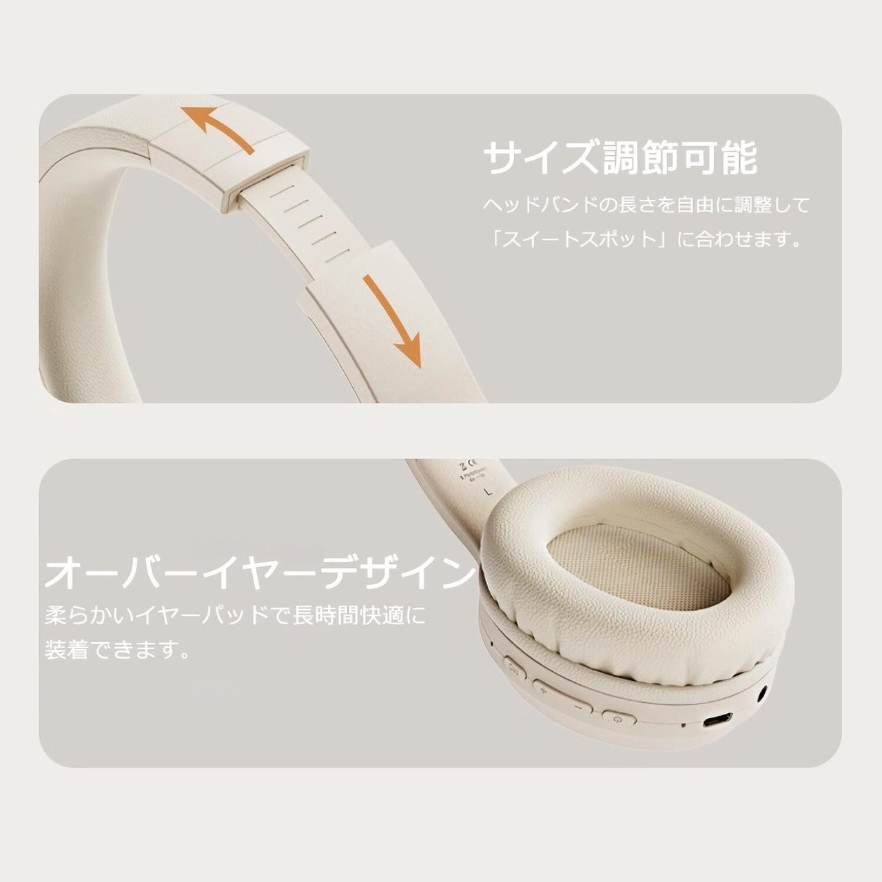 SITOAT Bluetooth ヘッドホン ワイヤレスヘッドホン ANC アクティブノイズキャンセリング オーバーイヤー ヘッドフォン 60時間使用 僅か180g 軽量設計 密閉型 HIFI重低音 音漏れ防止 マイク内蔵 折りたたみ 有線 無線 両用 通話 音楽 動画 語学勉強 ゲーミング 人気 ギフト誕生日 プレゼント Bluetooth 5.3 日本語説明書 (アイボリー)