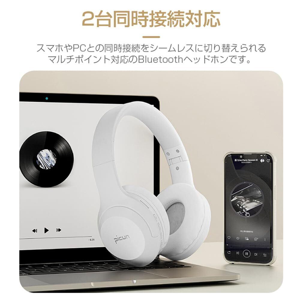 ヘッドホン Bluetooth ワイヤレスヘッドホン 有線 無線 両用 Bluetooth5.3 オーバーイヤーヘッドホン ノイズキャンセリング/密閉型/音漏れ防止/SDカード対応/23時間音楽再生/低遅延/HiFi 40mm大口径スピーカー/内蔵マイク付き/3.5mmオーディオケーブル付き/ハンズフリー/マルチポイント対応/折り畳み可能/日本語取扱説明書付属 (ホワイト)