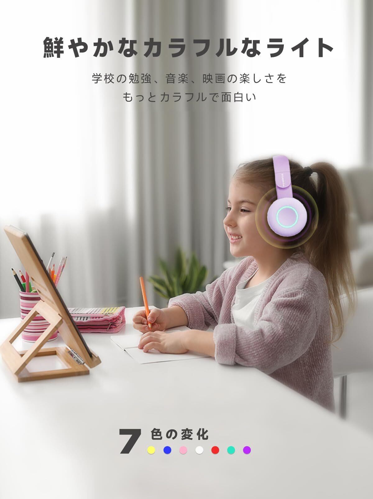 【キッズヘッドフォン】子供の耳のために設計された、最新で オシャレ ユニークなヘッドフォンです。BIGGERFIVEヘッドセットはプレミアムなステレオオーディオ品質とクリアなマイク通話を可能にします。長時間の旅行、飛行機、Web会議、宿題、アニメ、映画、音楽、数多の場所でより生きとした楽しい体験ができます。お子様もきっと気に入るはずです。