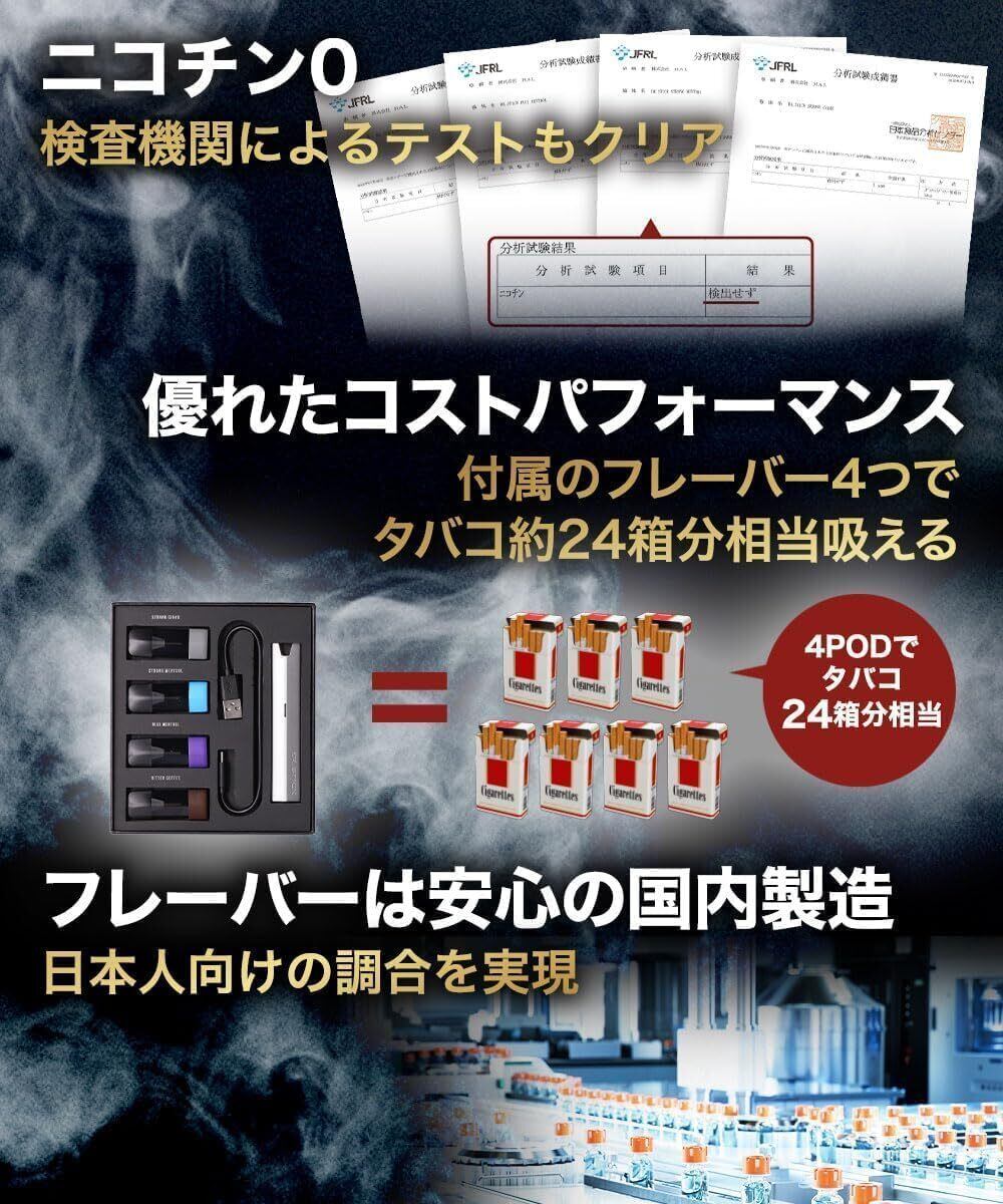 ドクタースティックタイプX 電子タバコ スターターキット ニコチンなし ピぺリン配合 | 本体+フレーバー4種 (シガー/メンソール/ブルーメンソール/コーヒー) | オリジナルステッカー付き | kki