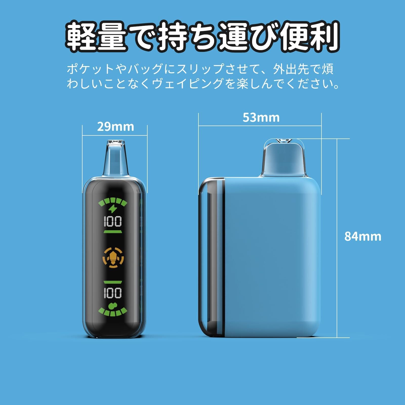 ️ 軽量で持ち運び便利 電子タバコ人気ランキング: たった82gの軽量設計で、使い捨て型ヴェイプは非常に軽く、持ち運びも簡単です。ポケットやバッグにスリップさせて、外出先で煩わしいことなくヴェイピングを楽しんでください。