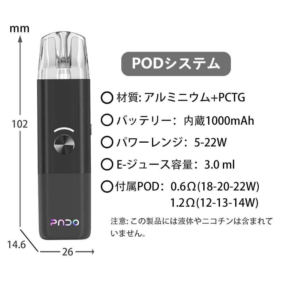 VAPTIO PADO 電子タバコ PODキット 1000mAh 22W 大容量バッテリー 充電式 コンパクト設計 たっぷり吸引 煙量調整可能 初心者おすすめ リキッド対応 軽量ポータブル 液体なし(黒)