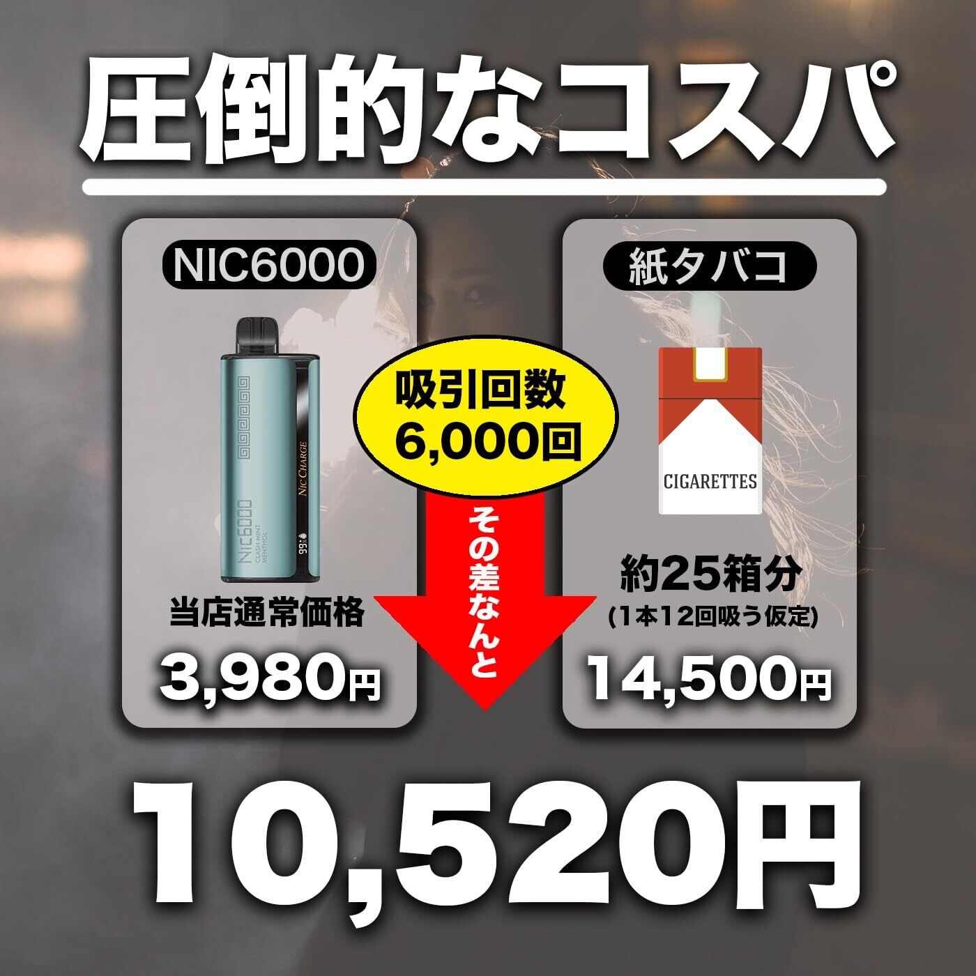 NIC CHARGE Nic6000 ニックチャージ ニコチャージ 電子タバコ VAPE 使い捨て 使い捨て電子タバコ 使い捨てシーシャ 使い捨てVAPE シーシャ 日本国産 JAPAN 禁煙 節煙 ニコチンゼロ ニコチンフリー ゼロニコチン (スパークリングコーラ)