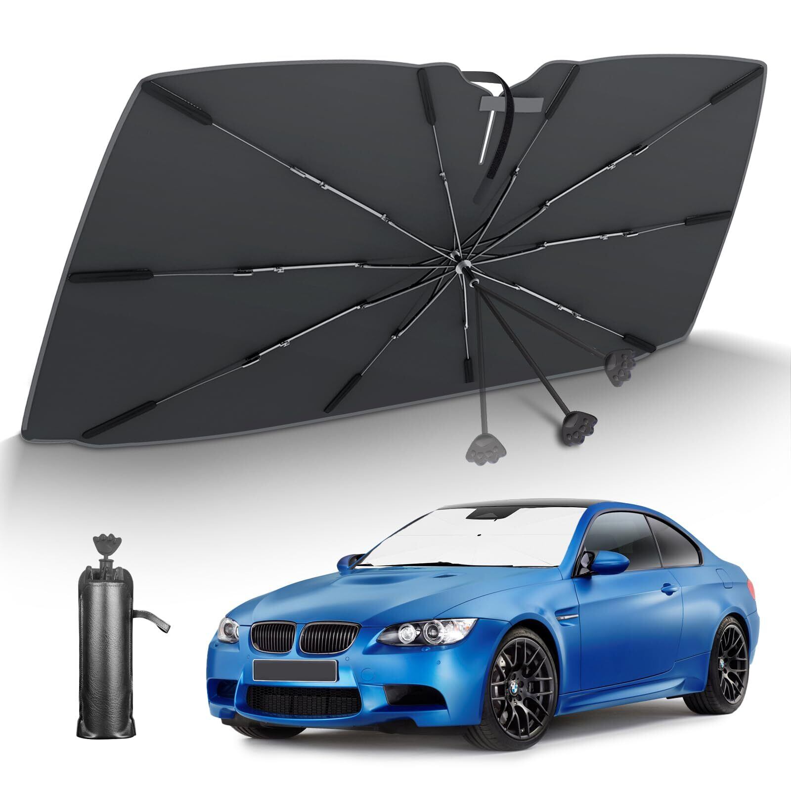 【新設計 完全フィット】 車用サンシェード フロント 360°折れる中棒 12層ナノ断熱素材 傘型 折りたたみ式 サンシェード 車用 遮光 遮熱 UVカット 紫外線遮蔽 取付簡単 バックミラー開き口 棒なし TPU中棒設計 内装を傷つけない 強化10本骨 日焼け対策 車中泊 仮眠 暑さ対策 収納ポーチ付き 10cm露先が折れる可能 ワンサイズでほぼ全車種に適用 | kki