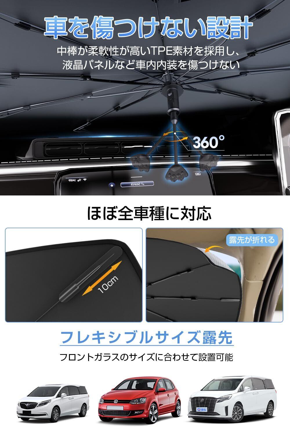【新設計 完全フィット】 車用サンシェード フロント 360°折れる中棒 12層ナノ断熱素材 傘型 折りたたみ式 サンシェード 車用 遮光 遮熱 UVカット 紫外線遮蔽 取付簡単 バックミラー開き口 棒なし TPU中棒設計 内装を傷つけない 強化10本骨 日焼け対策 車中泊 仮眠 暑さ対策 収納ポーチ付き 10cm露先が折れる可能 ワンサイズでほぼ全車種に適用