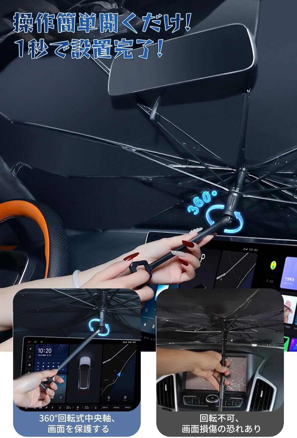 2025年新設計 車用サンシェード 曲がる傘柄 ホログラフィック反射傘面 車用パラソル 折り畳み傘 車日除けフロント 10本骨逆折り式 取付簡単 遮光 遮熱 車中泊 仮眠 プライバシー保護 カバー UVカット紫外線遮蔽 チタン断熱素材採用 暑さ対策車用 収納便利 サイズ選べる 収納ポーチ付き