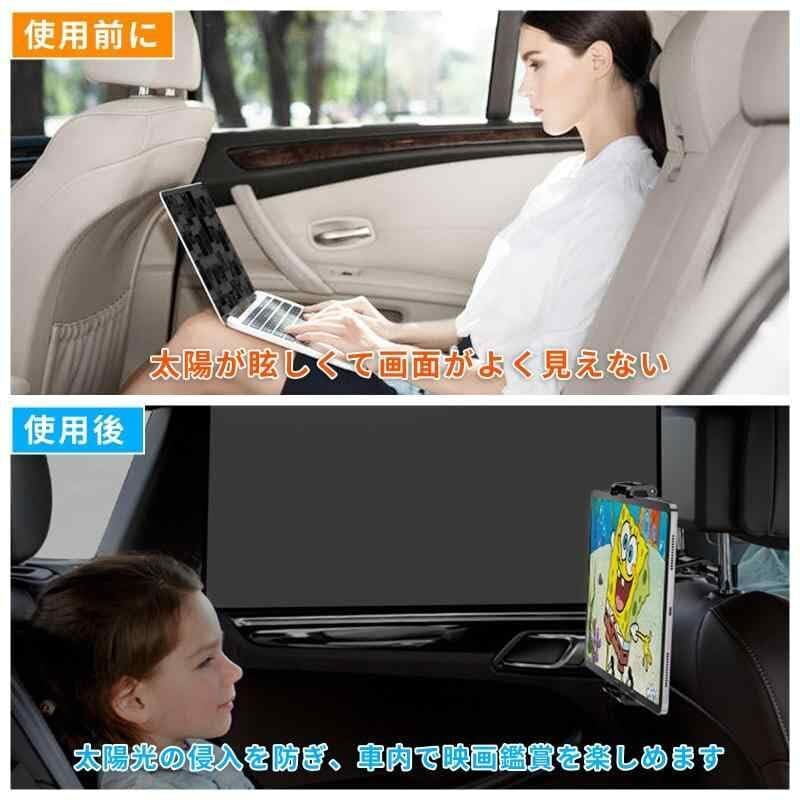 【優れたUVカット性能で快適】UVカット機能で紫外線から車内を守り、ペットや子供の安全を確保します。99%の遮光率で、98%の有害な紫外線をカットすることで、子供や乗客を効果的に保護します。車内温度の上昇を抑制し、快適な環境を提供します。メッシュ生地デザインは、日中の強い日差しを軽減しつつ、外の景色を楽しむことができます。車外からの気になる視線を遮る目隠しとしても活用できます。